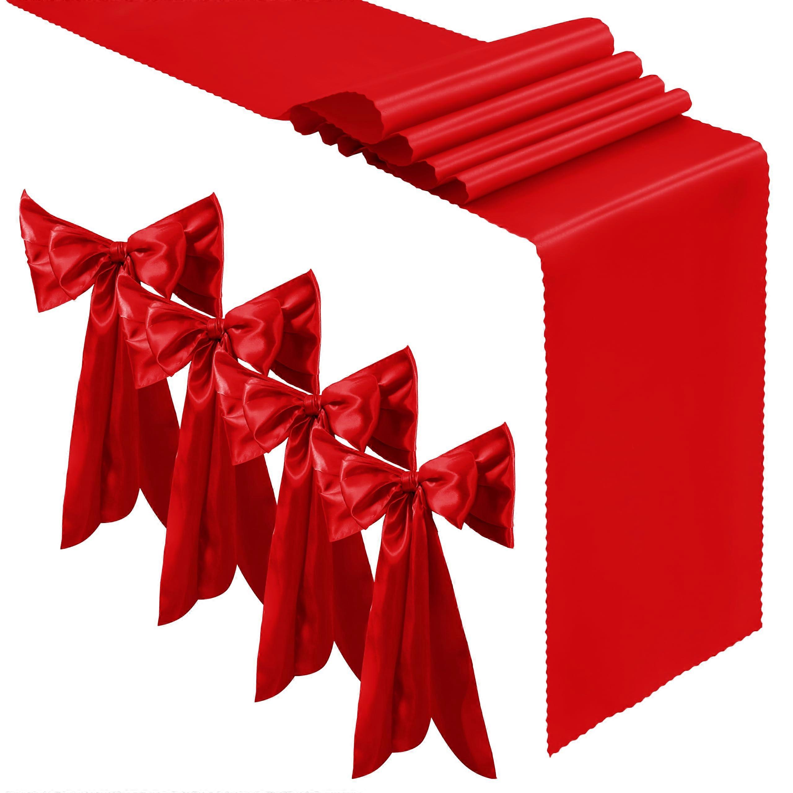 4 Pcs Red Satin Table Runner 12 x 108 Inch Elegant Seamless Edge Wedding and Party Decor