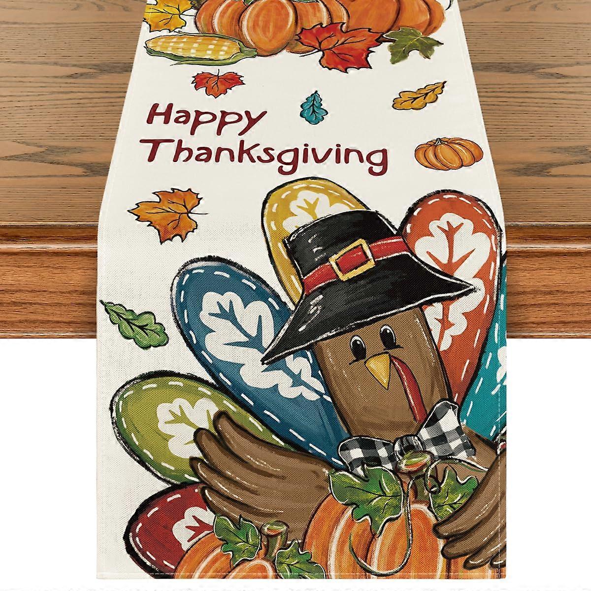 Thanksgiving Table Runner with Pumpkins 13x72 Inch Beige Polyester Autumn Harvest Dining Decor