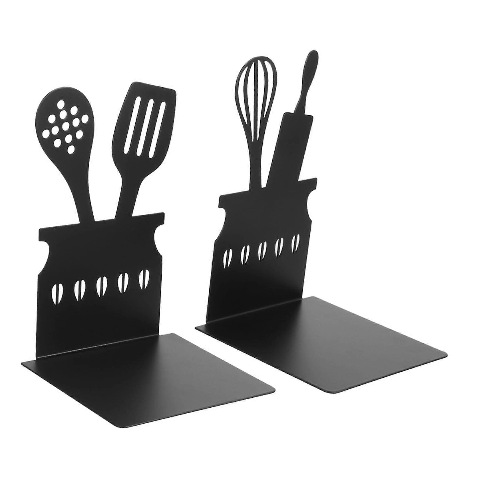 Metal Bookends with Cute Kitchenware Design, NonSlip Base for Heavy Books, Office and Home Use