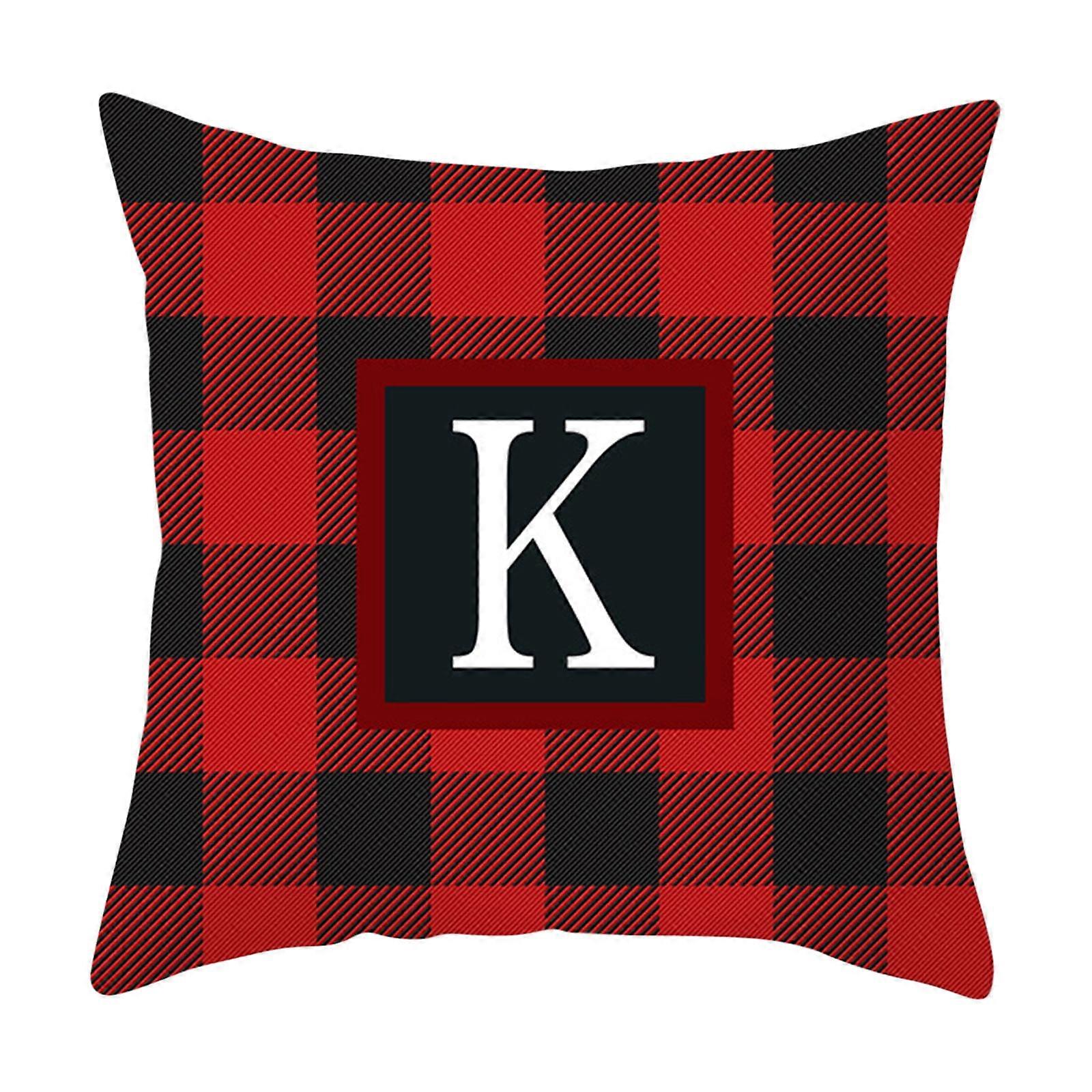 26 Initial Letters Christmas Pillow Covers 18x18, Buffalo Plaid Red & Black, Cotton Cushion Cases Xmas Decor for Home, Sofa, Bedroom