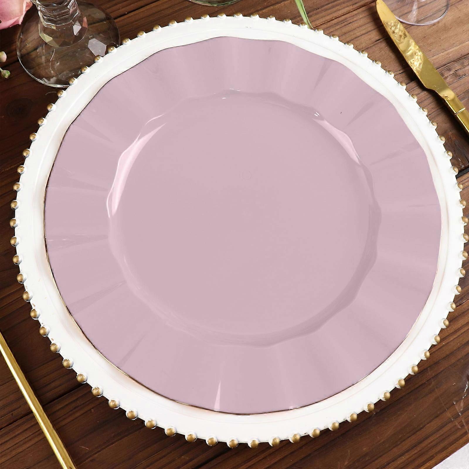Efavormart 10 Pack Lavender 11" Plastic Dinner Plates with Gold Wavy Rim, Disposable Tableware for Wedding, Outdoor Receptions