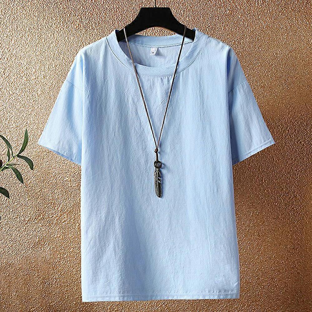 Men Short Sleeve Crew Neck T-shirt Loose Linen-Look Top Tee Shirt Casual Solid