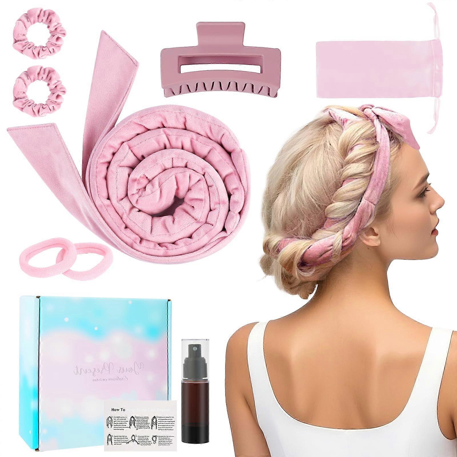 Heatless Curling Headband Set No Heat Overnight Hair Curlers Soft Sleep Rollers for Women Pink