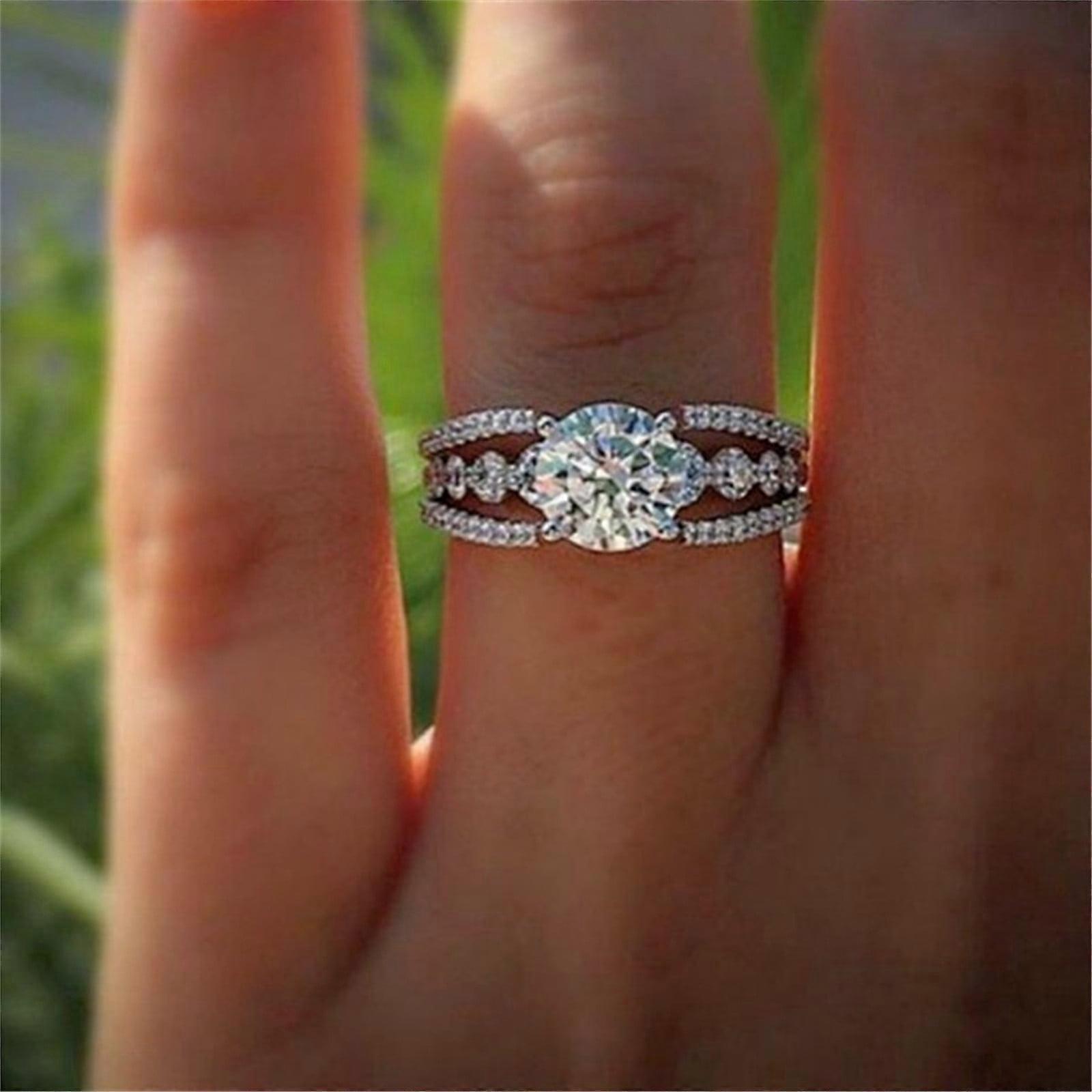 925 Women's Round White Zircon Engagement Rings Size 8