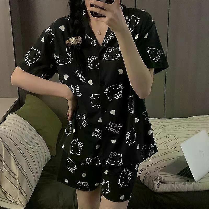 Two-piece set Hello Kitty pajamas summer anime student loungewear cute girl loungewear shirt short-sleeved shorts set