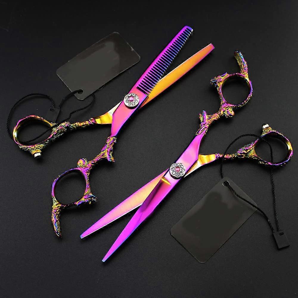 6 Inch Professional Hair Cutting Scissors JP 440c Steel Ergonomic Purple Dragon Handle