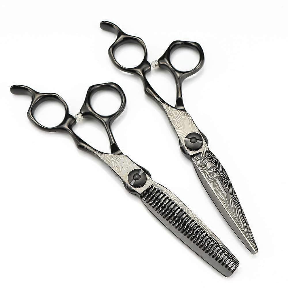 Professional Hair Cutting Scissors 6 Inch Damascus Steel Black Barber Shears Set with Comfort Grip