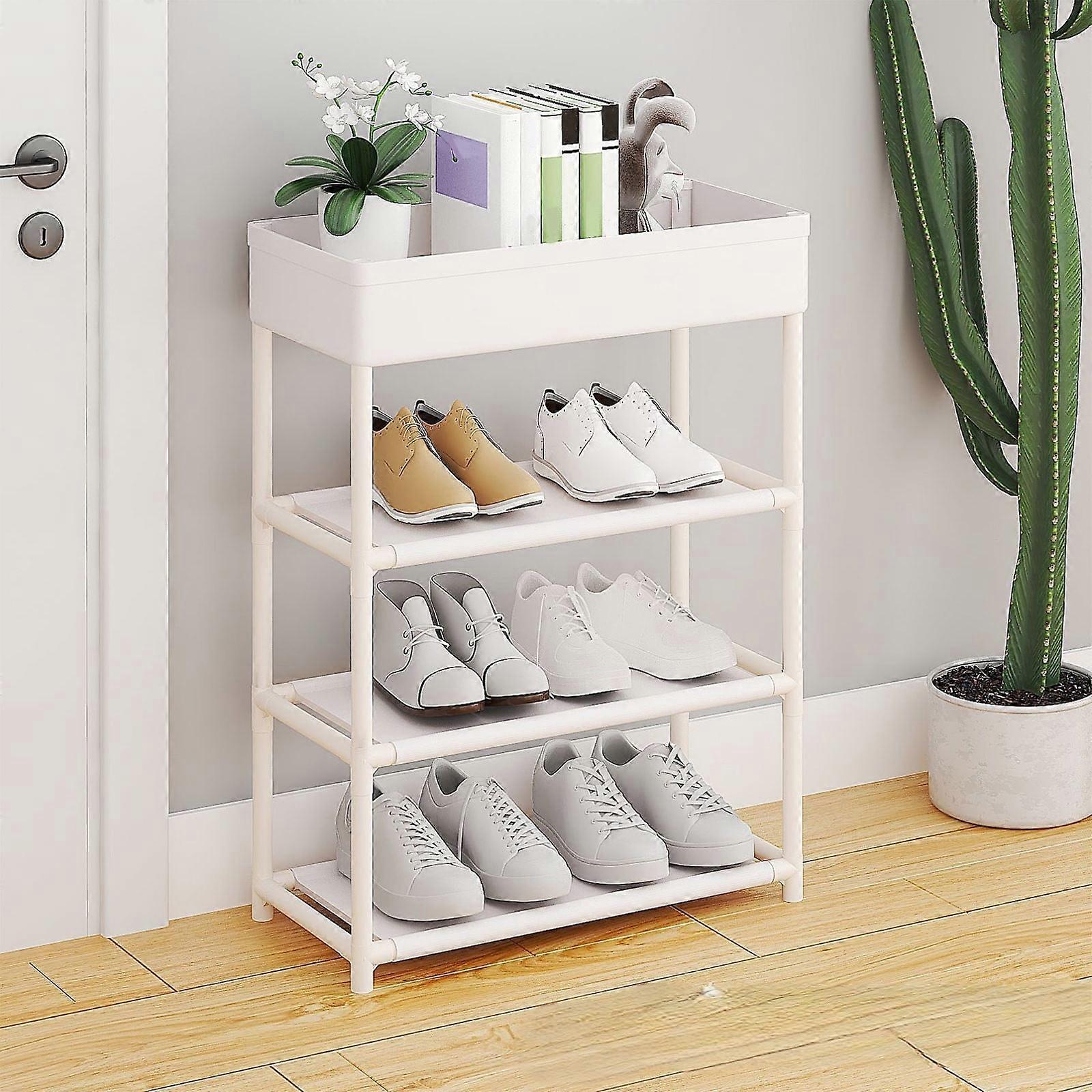 FAMTKT Multi-Layer Shoe Rack with 4 Metal Shelves, Compatible with Bedroom, Closet, Entryway Storage