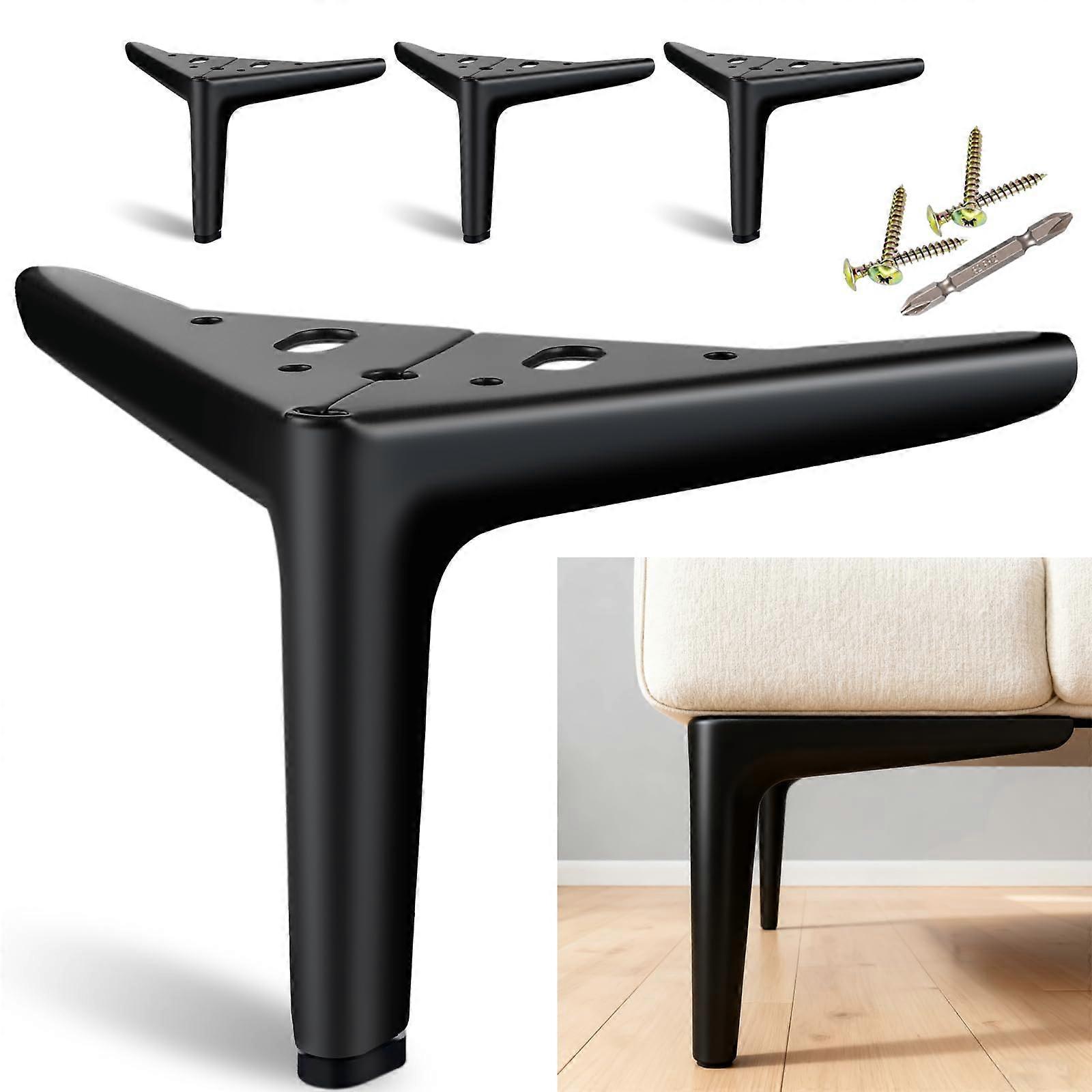 Furniture Legs Set of 4, 5 Inch Modern Black Metal, Heavy Duty 1200lbs, Floor Protection Pads