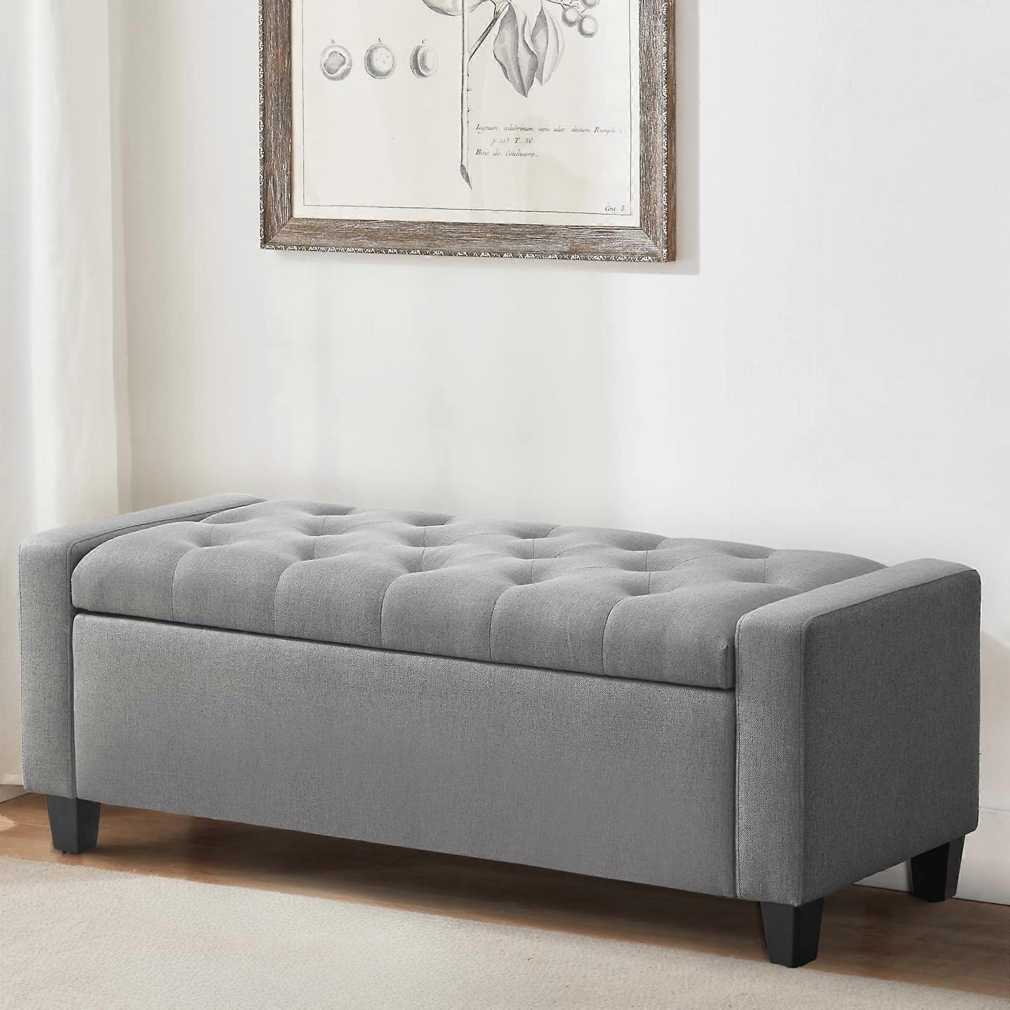Storage Ottoman Bench with Hidden Compartment, 48in Upholstered Bedroom and Living Room Seat, Grey
