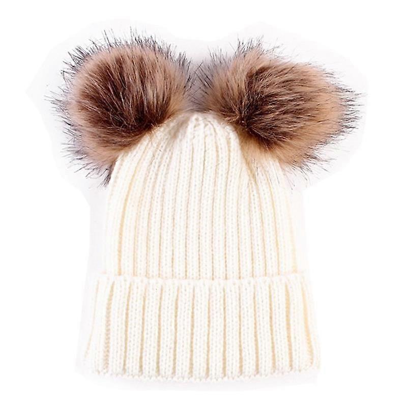 New Faux Fur Bonnet Enfant Women Double Pom Pom Beanie Hat Winter Warm Cap Baby Winter Crochet Hats Girls Boys Knitted Beanies