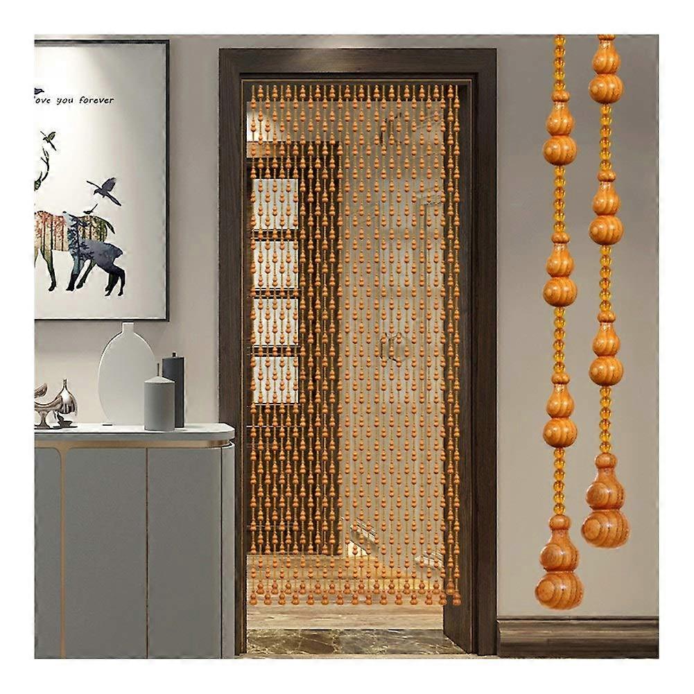 Wood Beaded Curtain Room Divider for Doorway Privacy Partition Punch Install 70x176cm Natural