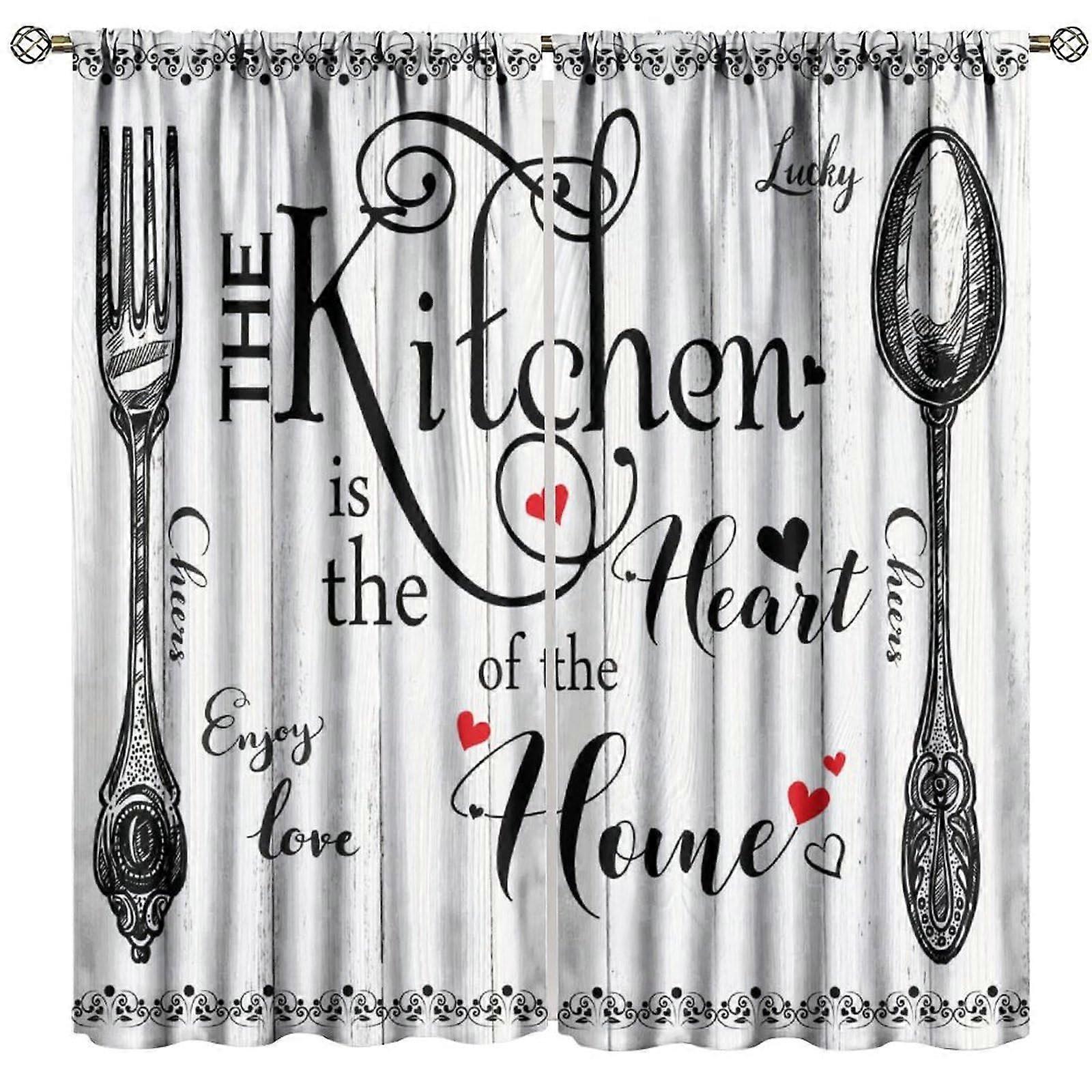 Vintage Black and White Farmhouse Kitchen Curtains, Blackout Rod Pocket Drapes for Dining Room, 42x45in Pack of 2