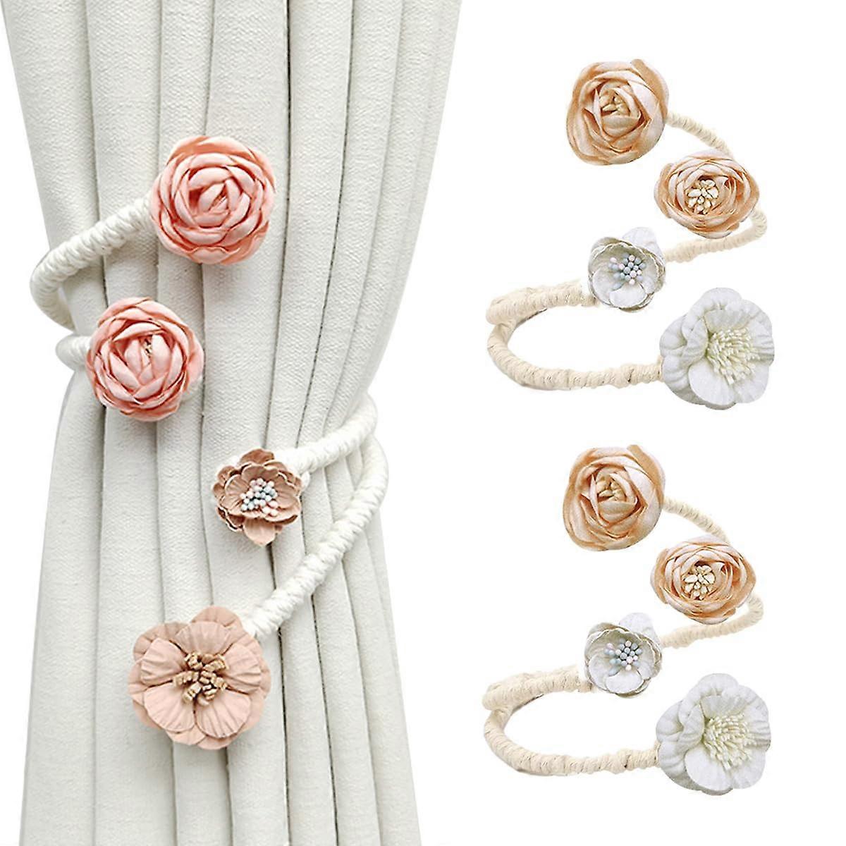 Elegant Floral Curtain Tiebacks and Holdbacks, No Drill Branch Flower Clips for Living Room, 2 Champagne