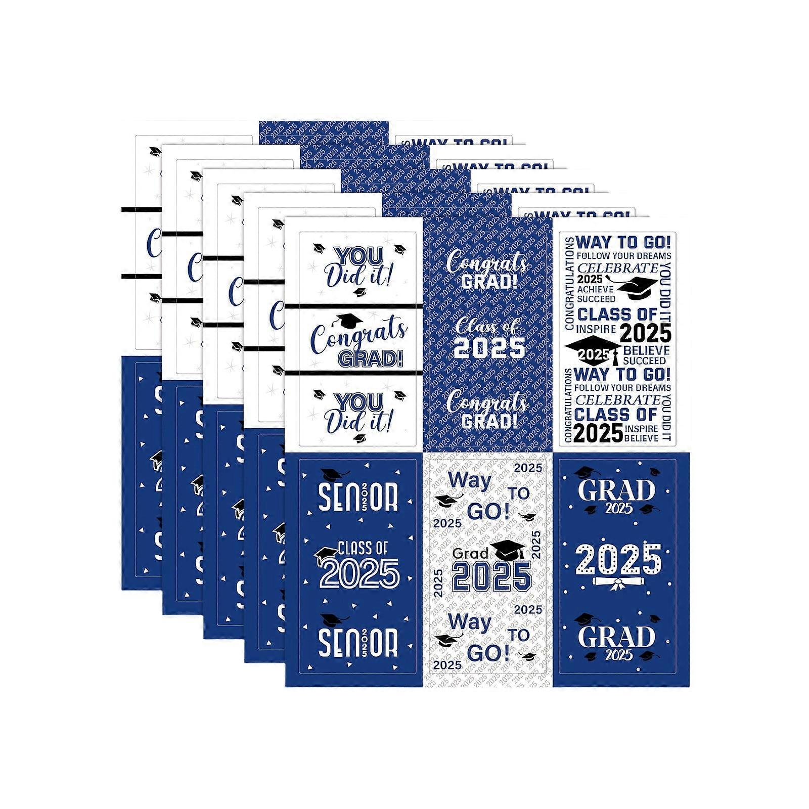 2025 & CISIL Graduation Candy Stick Signs, 5 Sheets - Black, Gold, Blue Stickers for Graduation Party, Chocolate Packaging Decor
