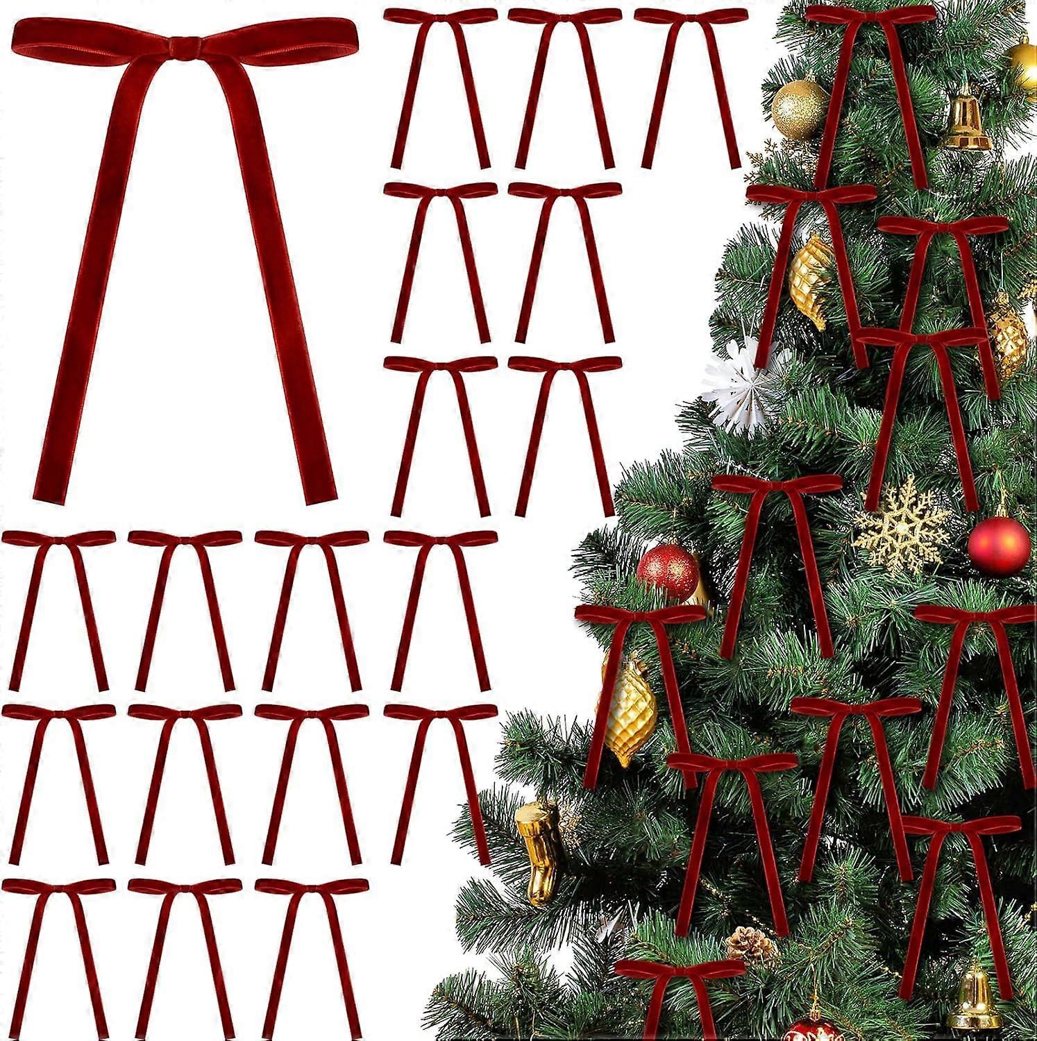 Dalrosia 24PCS Velvet Christmas Bows, 5x7 Inch, Vintage Rustic Ribbon for Wreaths, Garlands, Gifts, Home Decor, Indoor & Outdoor
