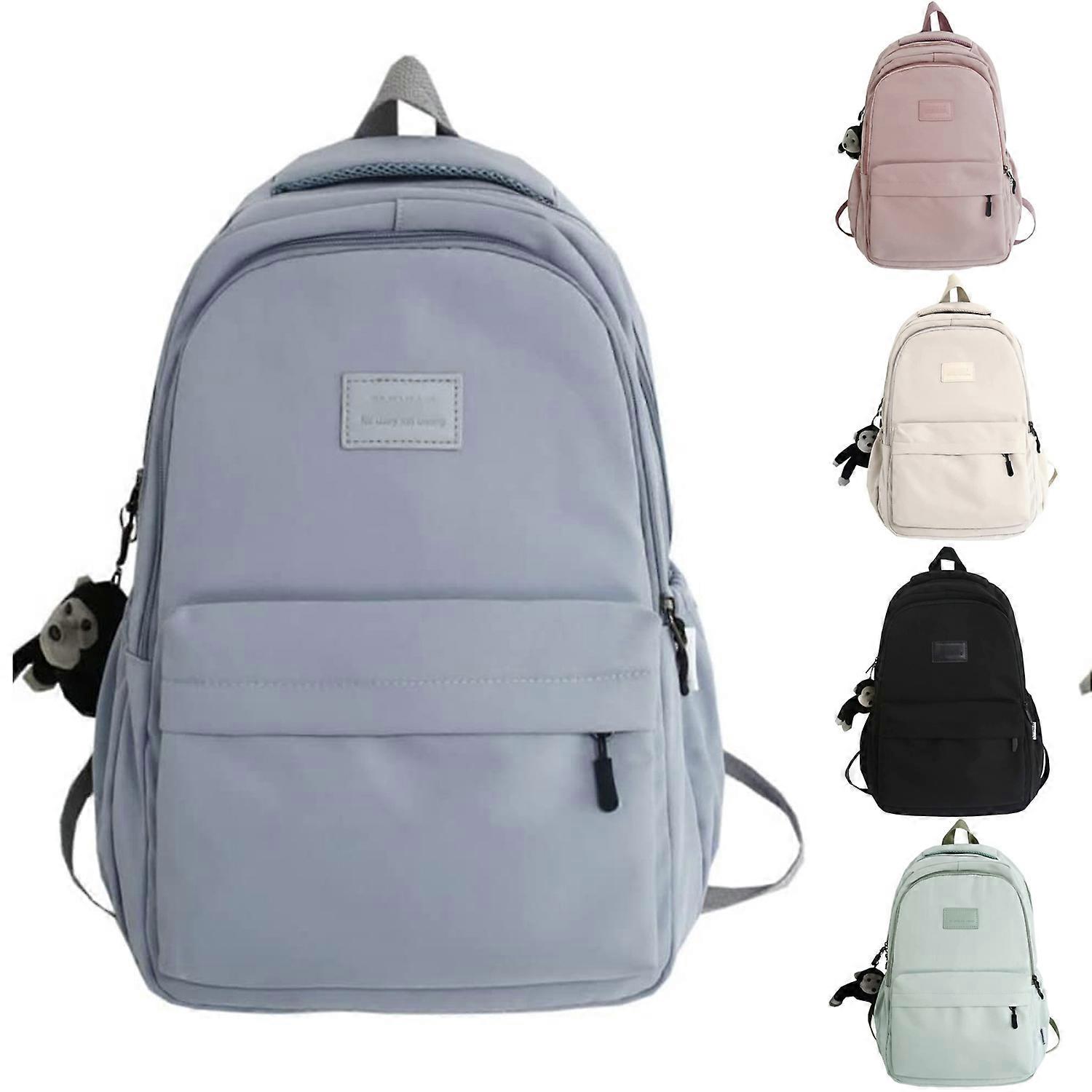 Women's Backpack Schoolbag for Teenage Girls Knapsack Student School Backpacks Solid Color Multi-pocket Woman Travel Book Bag(Blue)