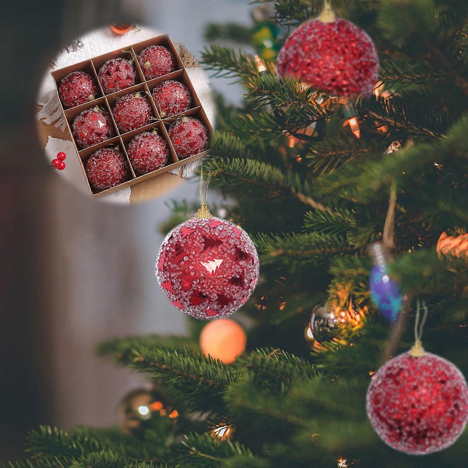 Lksixu 9 Pcs 3.15" Christmas Tree Ornaments, Sequin Glitter Baubles with Rope, Shatterproof Xmas Decorations for Tree Party