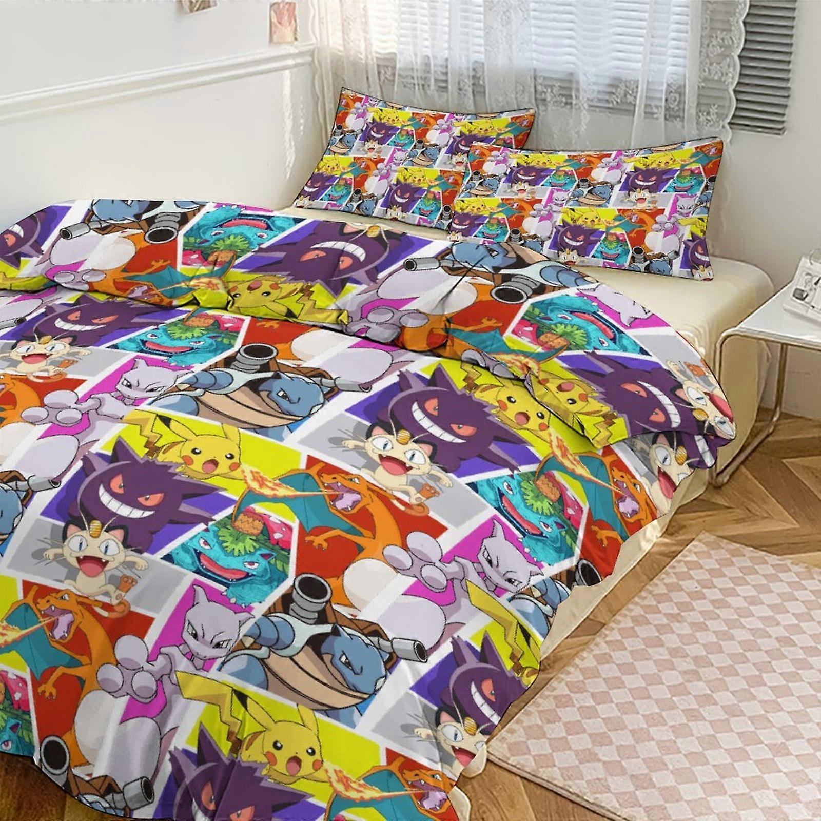 3Pcs Pokemon Comforter Set Cartoon Cute Bedding Set Soft Bedding Set with 1 Comforter Cover and 2 Pillowcases,Color 5, 86"×70"