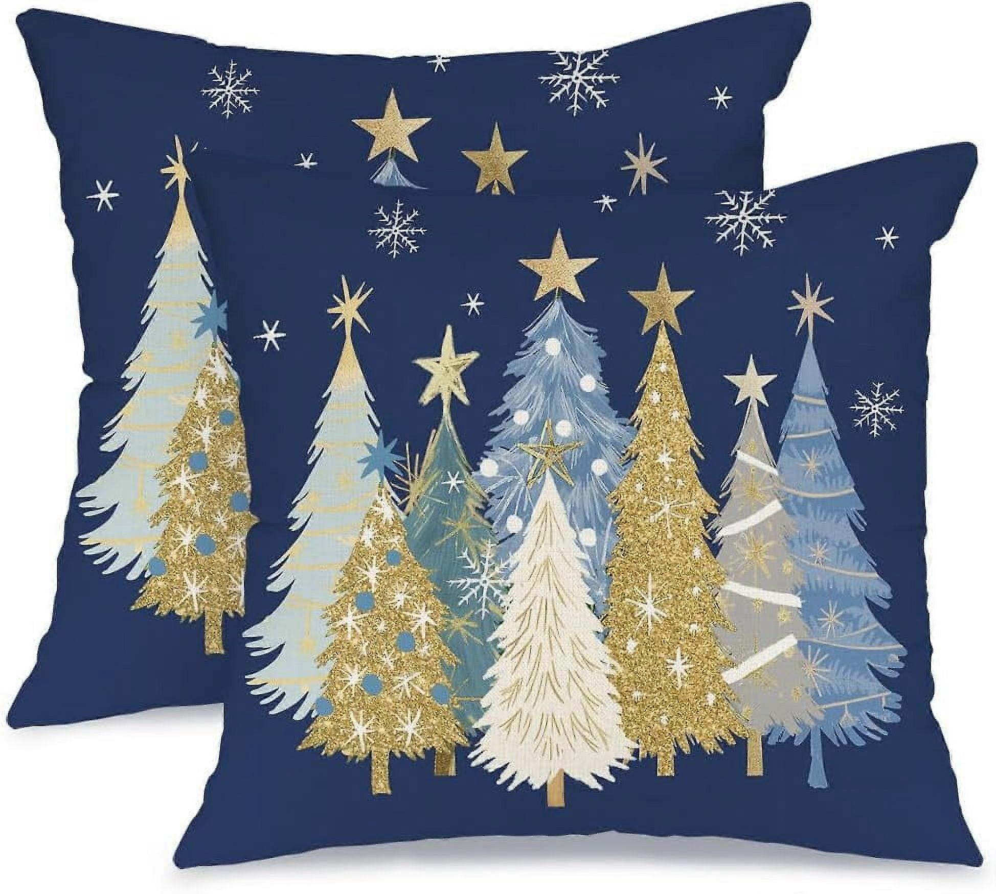 Christmas Pillow Covers 20x20 Set of 2, Watercolor Tree & Stars, Holiday Farmhouse Winter Decor for Sofa Couch (Blue) AA608-20-2