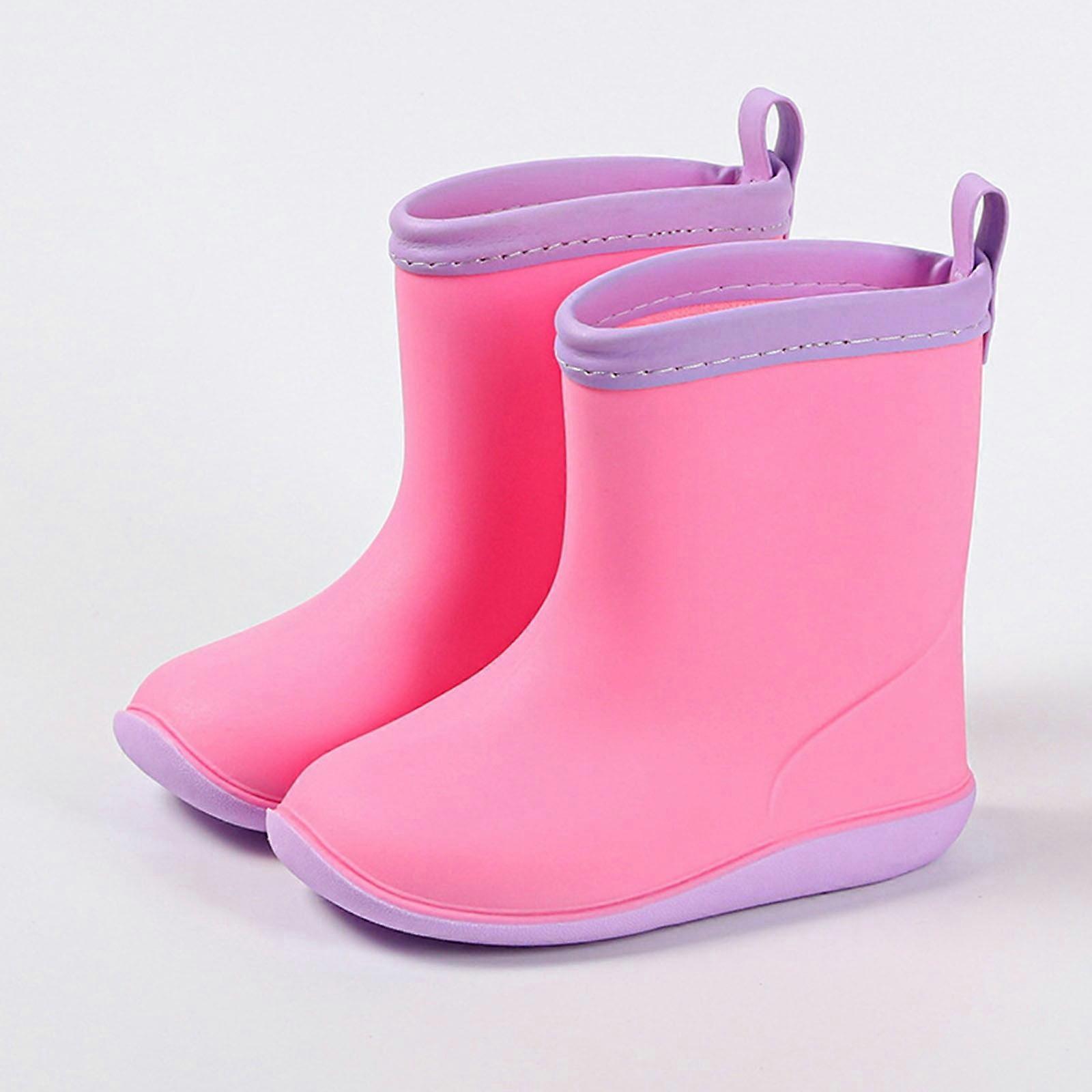 BGZLEU Toddler Rain Boots with Handles - Waterproof Kids Rubber Mud Boots, Lightweight & Cute, Compatible with Boys Girls (Pink, Size 25)
