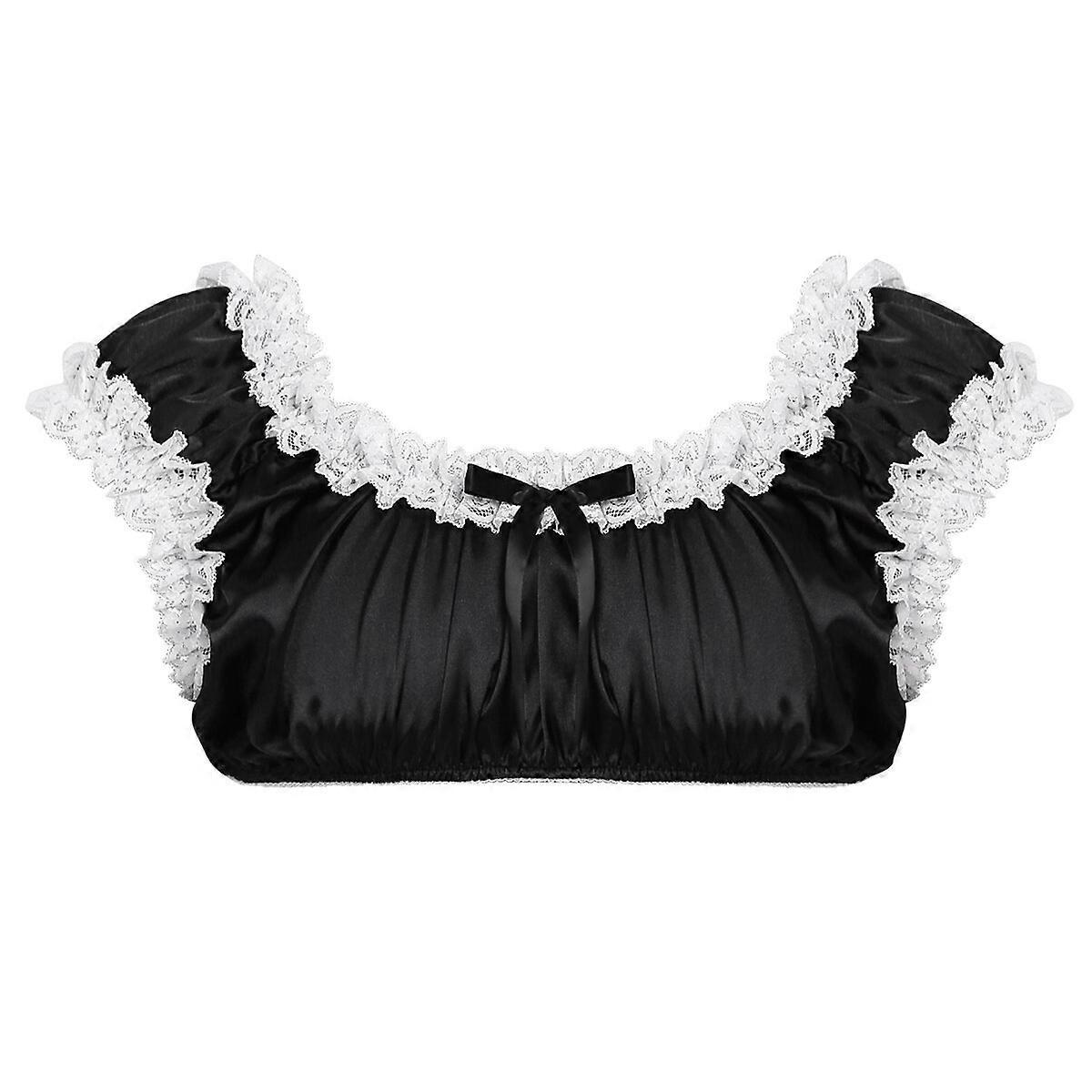 Men Sissy Frilly Ruffled Lace Lingerie No Pad Bra Top Bikini Underwear Nightwear