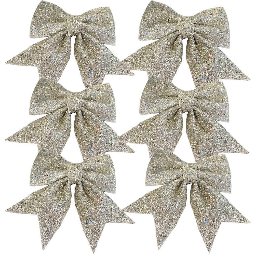 6pcs Christmas Bows, Champagne Wreaths & Sequin Tree Bow Ties, Xmas Decorative Ornaments for Home Party Compatible with Xmas Decor