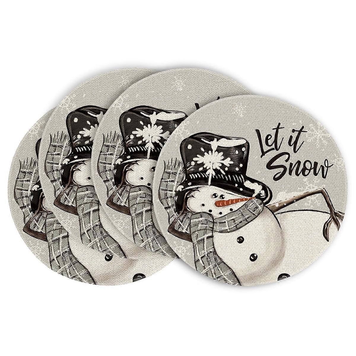 Smile Grey Snowman Snowflake Let it Snow Christmas Placemats Set of 4, 15 Inch Seasonal Winter Xmas Round Table Mats for Dining Decoration