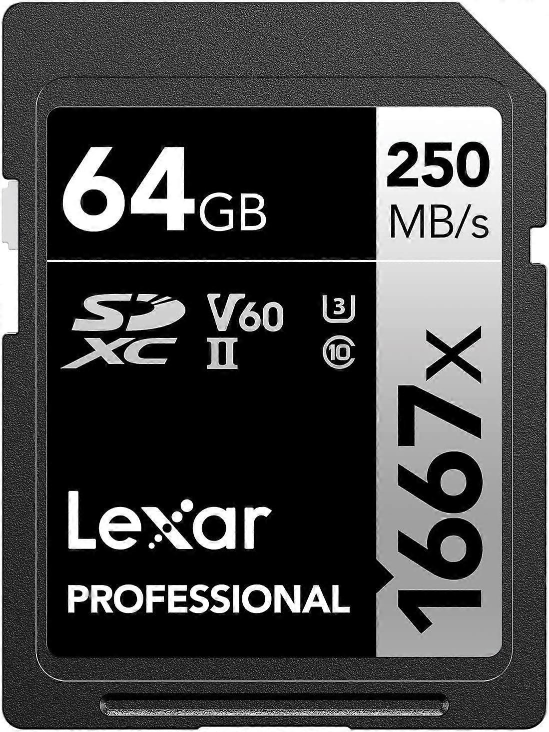 Professional 1667x 64GB SDXC UHS-II Memory , C10, U3, V60, Full-HD & 4K Video, Up To 250MB/s Read,