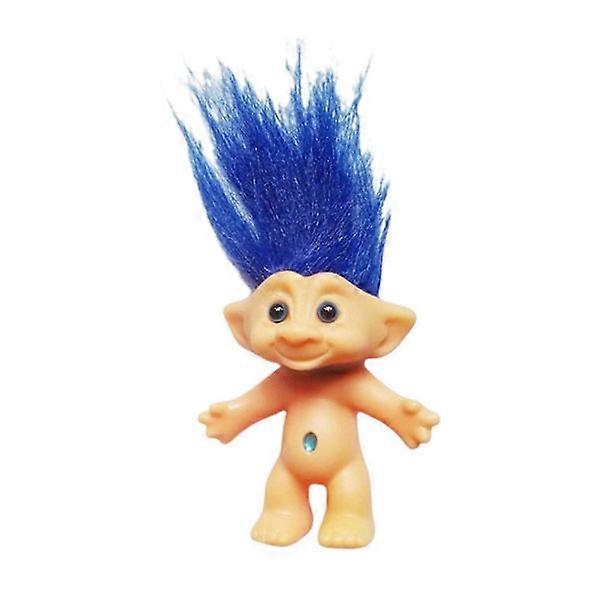 10cm Troll Doll Model Colored Long Hair Lady Doll Miniature Figurine Ornament Lovely Leprocauns Ugly Elf Doll Action Figure Blue 10cm