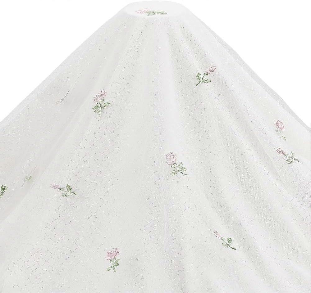 1 Yards 59" Wide Pink Floral Embroidered Tulle Lace Fabric, Polyester White Tulle Sewing Fabric for DIY Dresses, Wedding Decoration