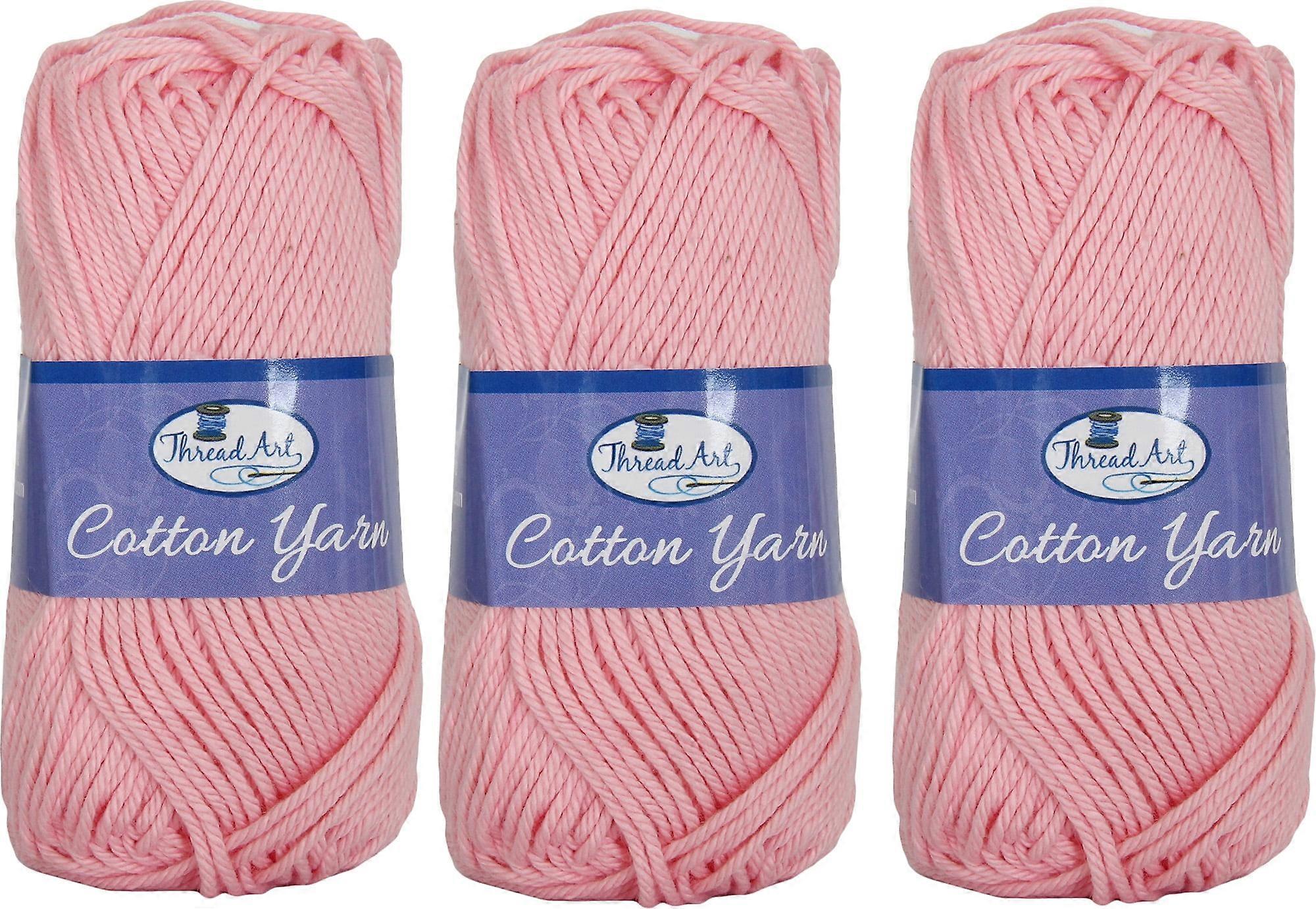 3 Pack of 100% Pure Cotton Crochet Yarn by Threadart | Lt. Pink | 50 gram Skeins | Worsted Medium #4 Yarn | 85 yds per Skein - 30 Colors Available