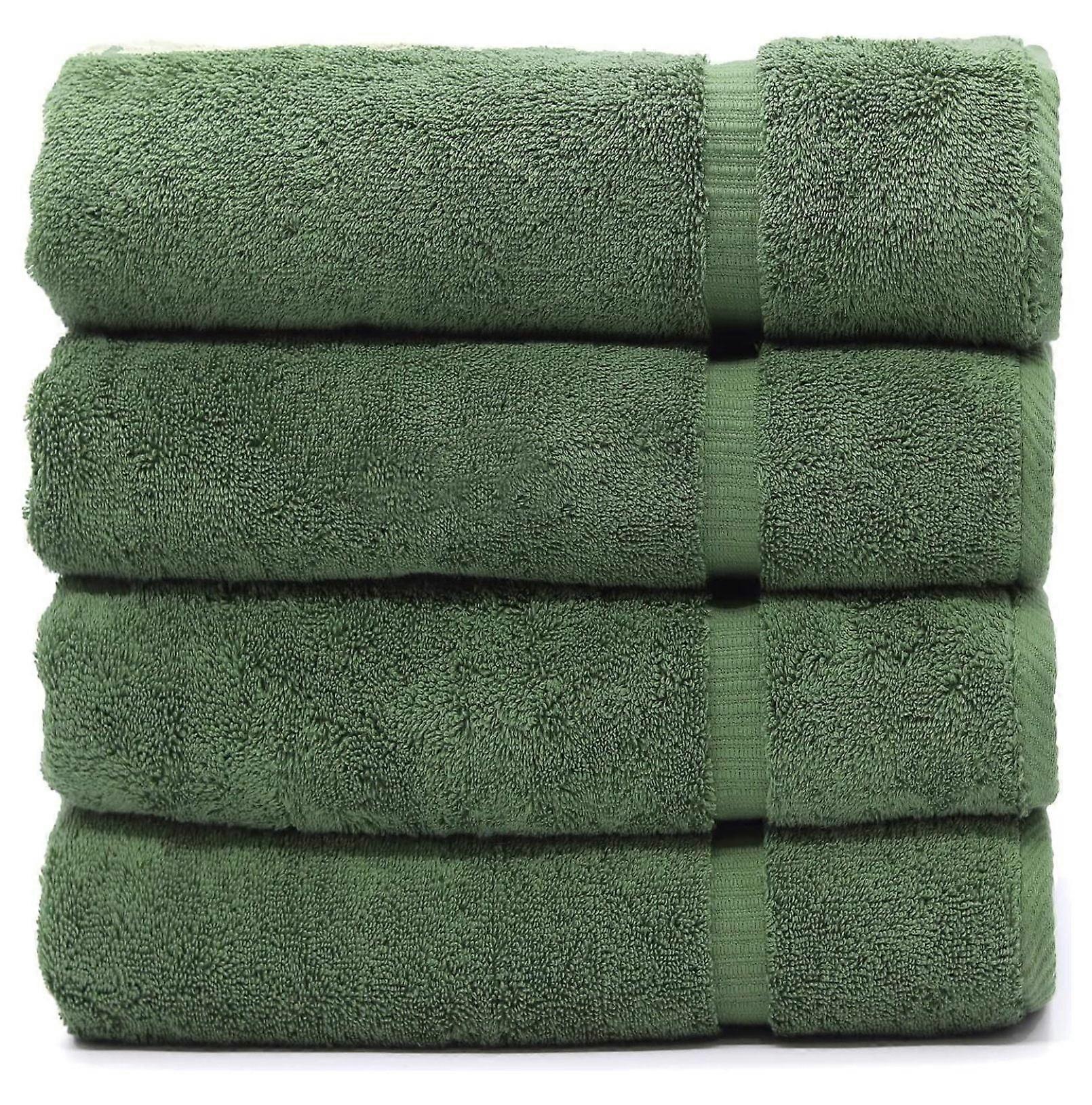 Luxury Hotel & Spa Turkish Cotton 700 GSM Quick Dry Eco-Friendly Bath Towel Set 27x54, Dobby Border, Soft, Moss - Set of 4
