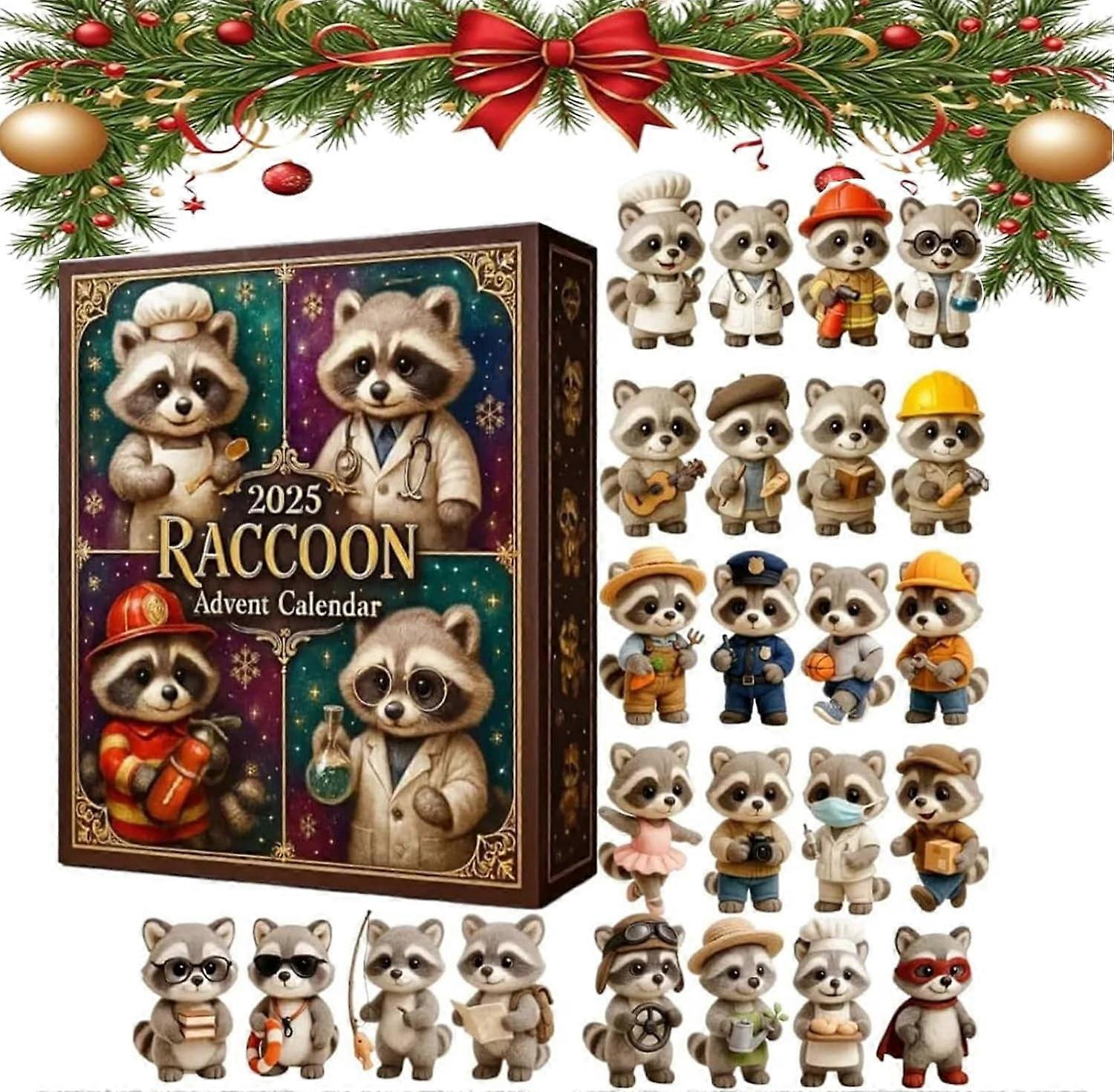 Raccoon Advent Calendar 2025, 2D Acrylic Christmas Countdown Decor, 24 Days Funny Animal Ornament, Humorous Holiday Gift for Kids & Adults