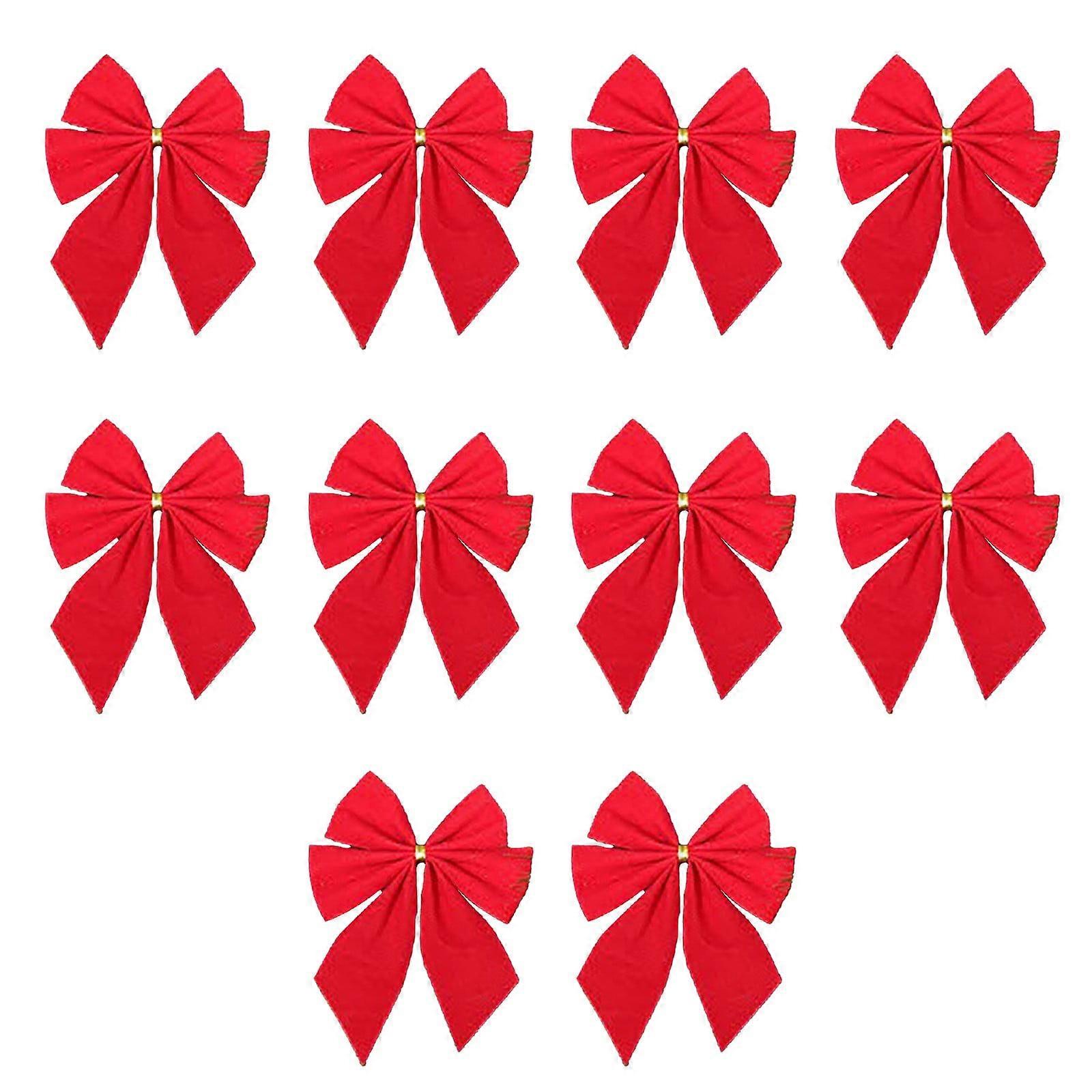 10 Pcs Red Velvet Christmas Bows 4.5" x 2.9", Holiday Ribbon Bows for Indoor & Outdoor Decor, compatible with Christmas Trees, Wreaths, Gifts