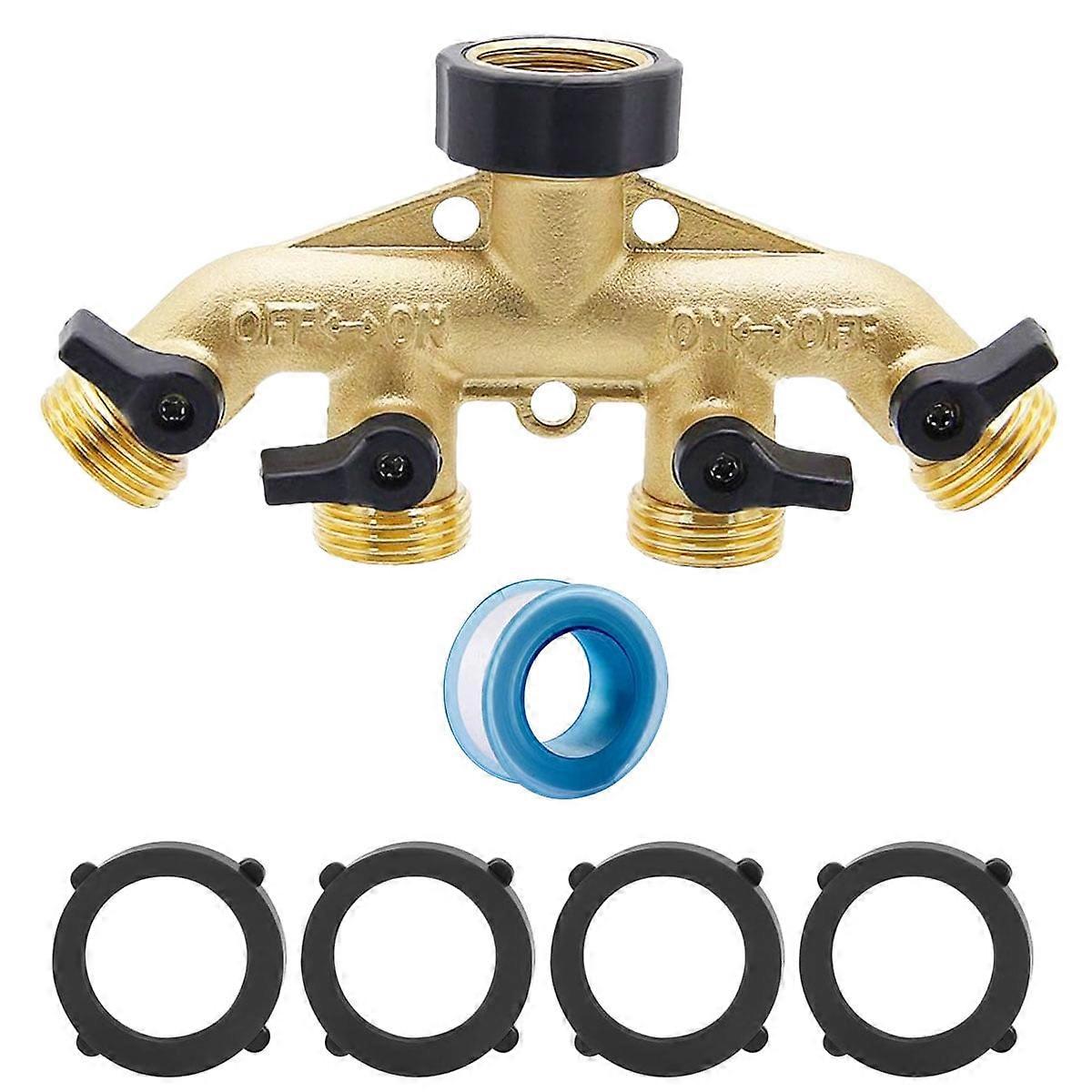 Hose Splitter 4 Way Brass Hose Splitter 3/4" Brass Hose Faucet Manifold Garden Hose Adapter Connector Water Spigot