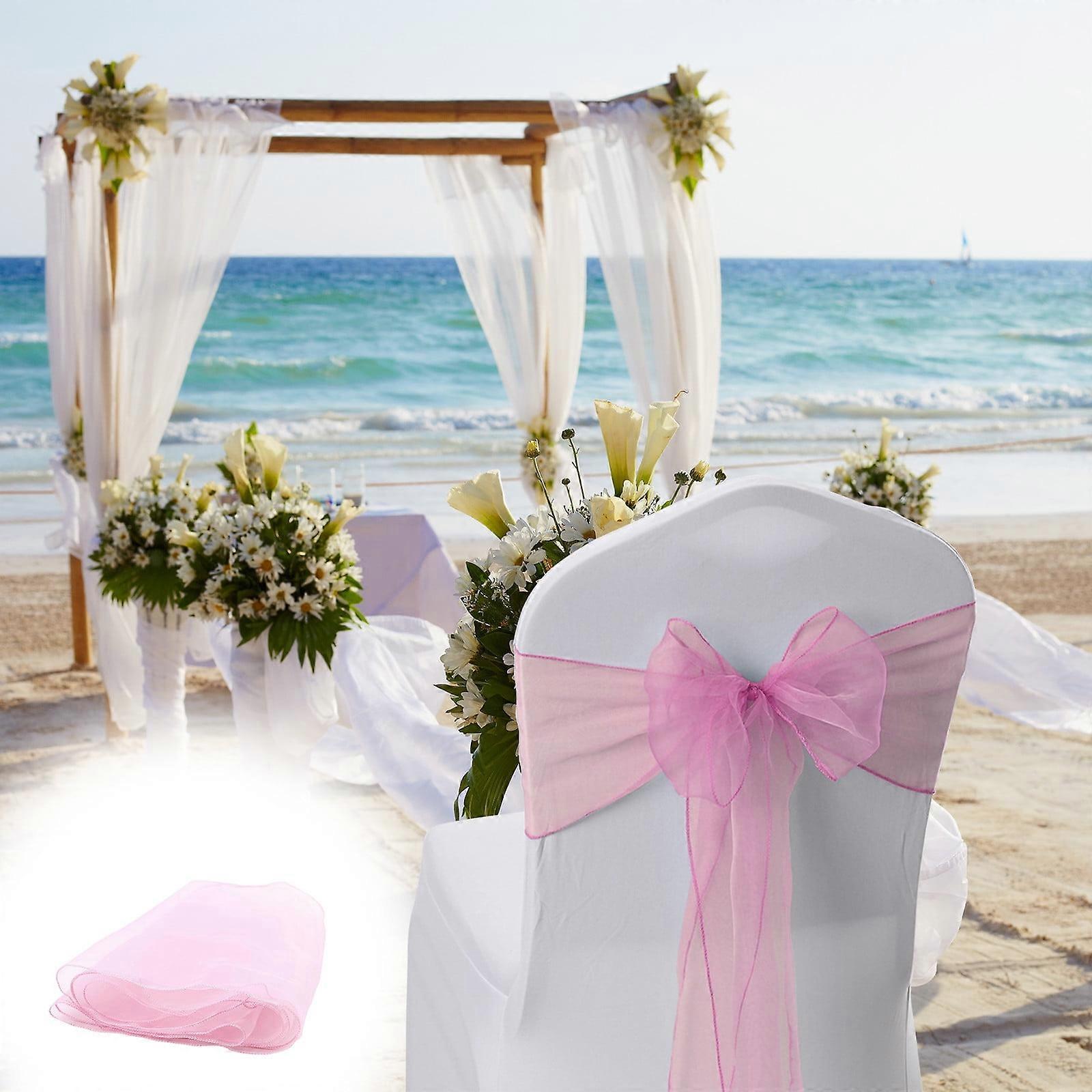Caoilympe Organza Chair Bows Sashes For Party Wedding Birthday Banquet Bow Tie Ribbon Chair Cover Sash Hotel Banquet Wedding Party Decoration Pink