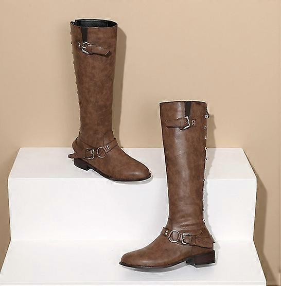 Women's Zip Leather Knee High Boots Riding Knight Buckle Rivet Shoes