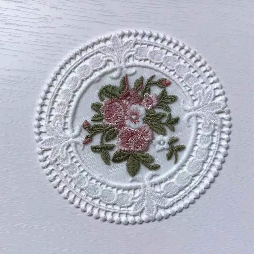 4Pcs French Lace Cup Cushion Embroidery Circular Shooting Prop Items INS Desktop Decoration Hollow Knit Tea Set Accessories Insulation Cushion White