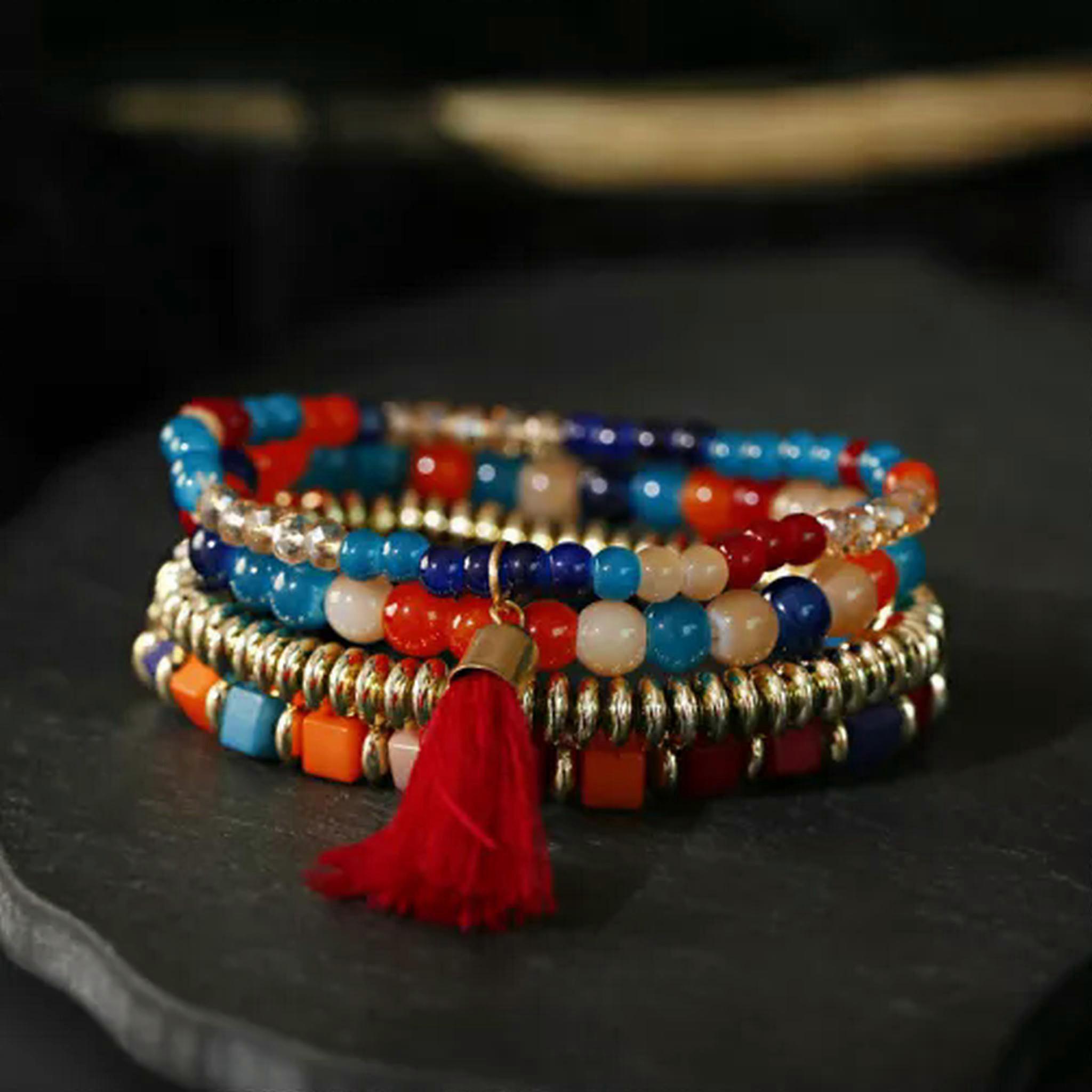 RSAMD Bohemian Charm Multi Layered Bracelets Women Ethnic Cube Beads Tassel Bracelets-Multi Color