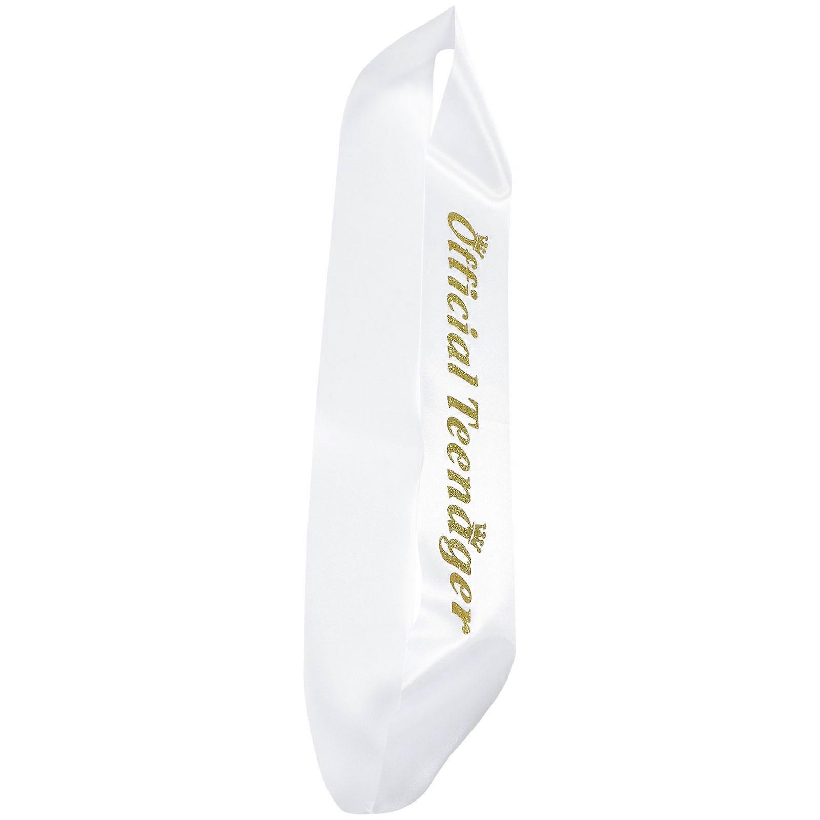 White 13th Birthday Sash for Teenagers Cloth Photo Prop Keepsake Party Decor Size 3.5x72 Inches