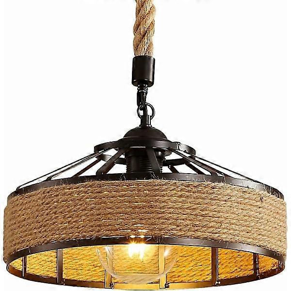 Hemp Rope Chandelier, Retro Black Metal Pendant Lamp, Rustic Hanging Chandelier, Industrial Pendant Lamp E27 Bulb (Excluding Light Source)