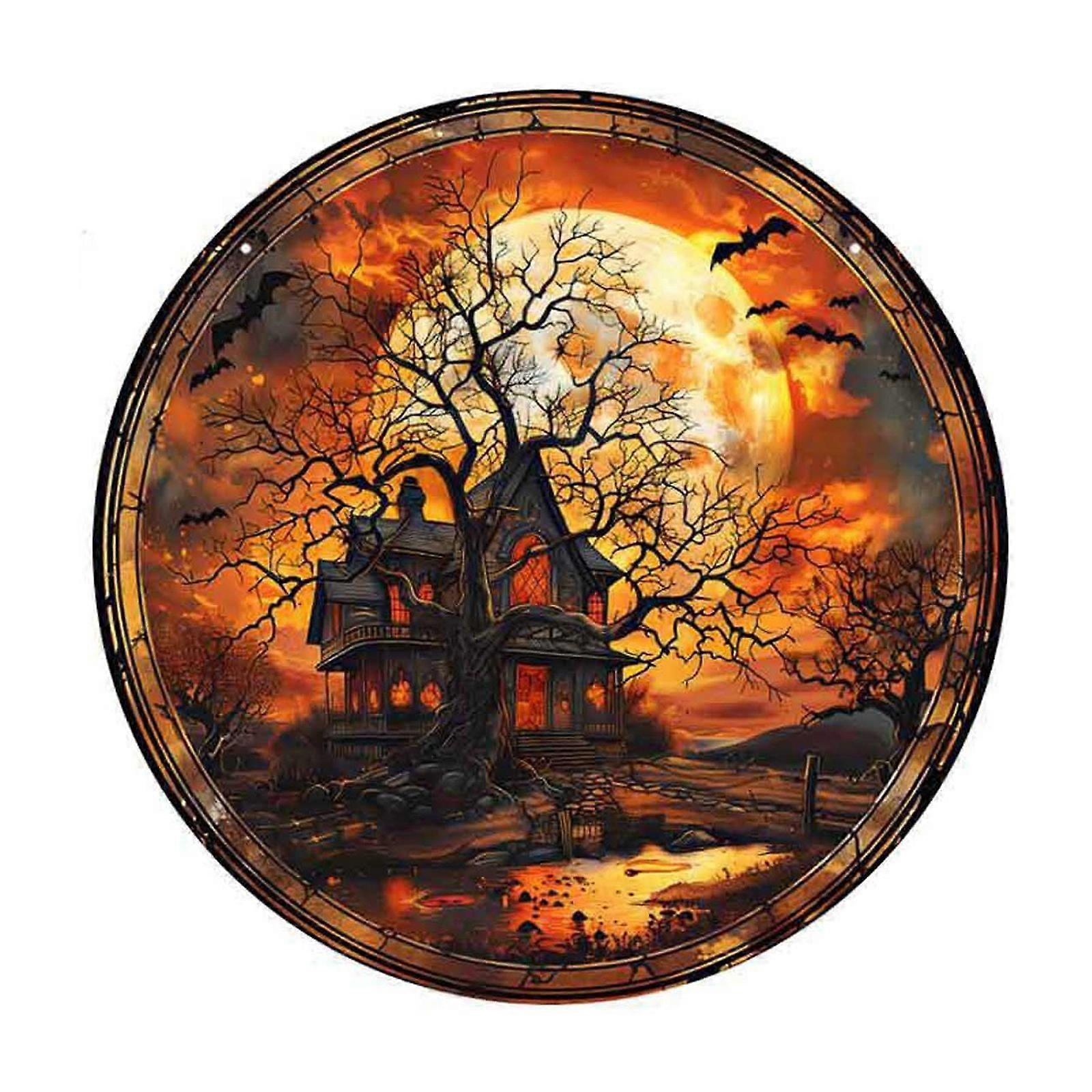 Wadada Glow in The Dark Halloween Wall Decor, Luminous Bat Castle Acrylic Window Ornament, Farmhouse Home Party Decoration (7.9 Inch)