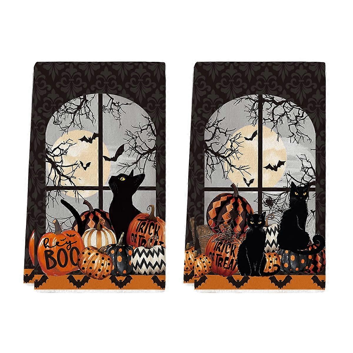 Sm:)e Black Cat Pumpkins Trick or Treat Halloween Kitchen Dish Towels Set of 2, 18x26 Inch