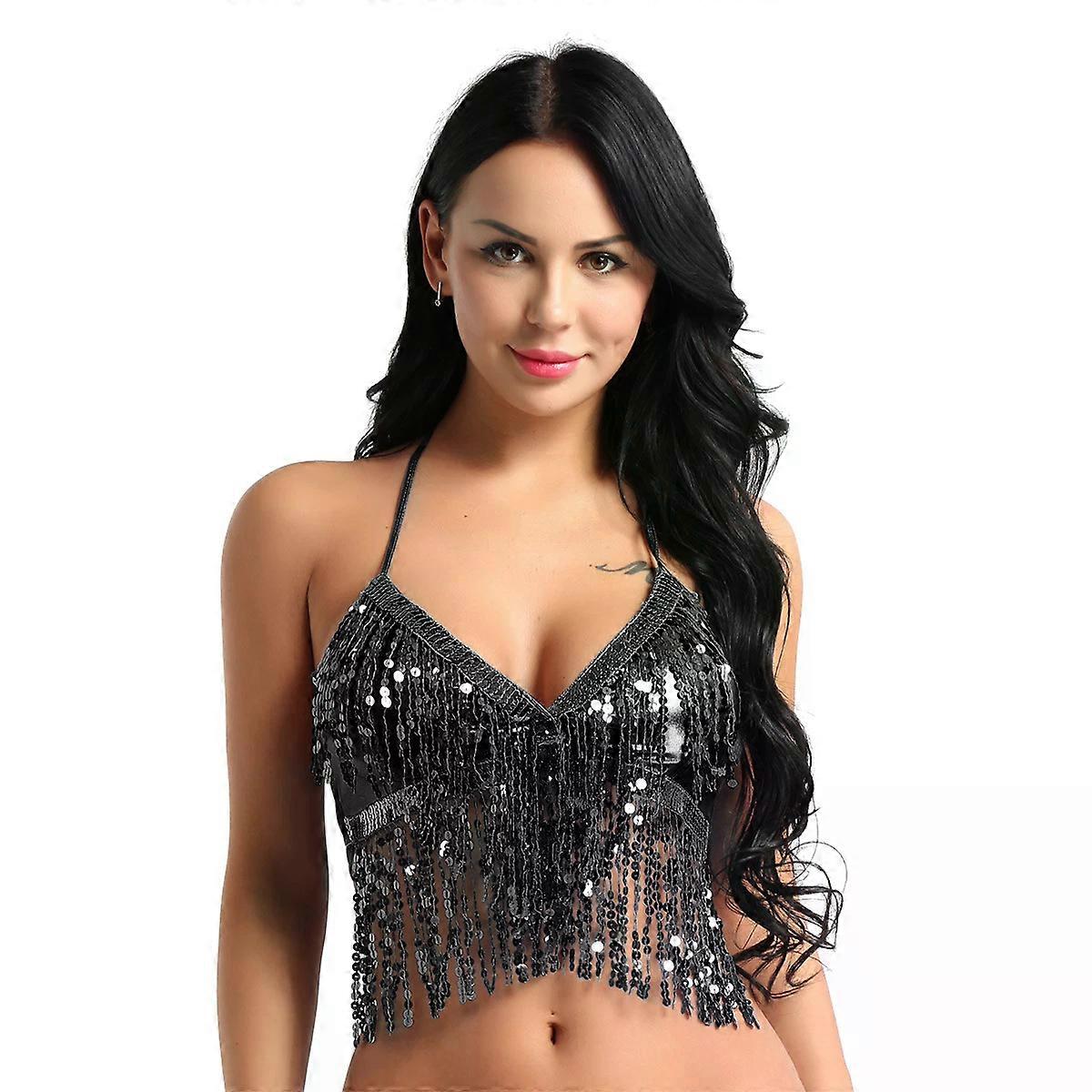 Women Belly Dance Costume Halter Bra Top Sequins Beaded Bra raves dance clubwear