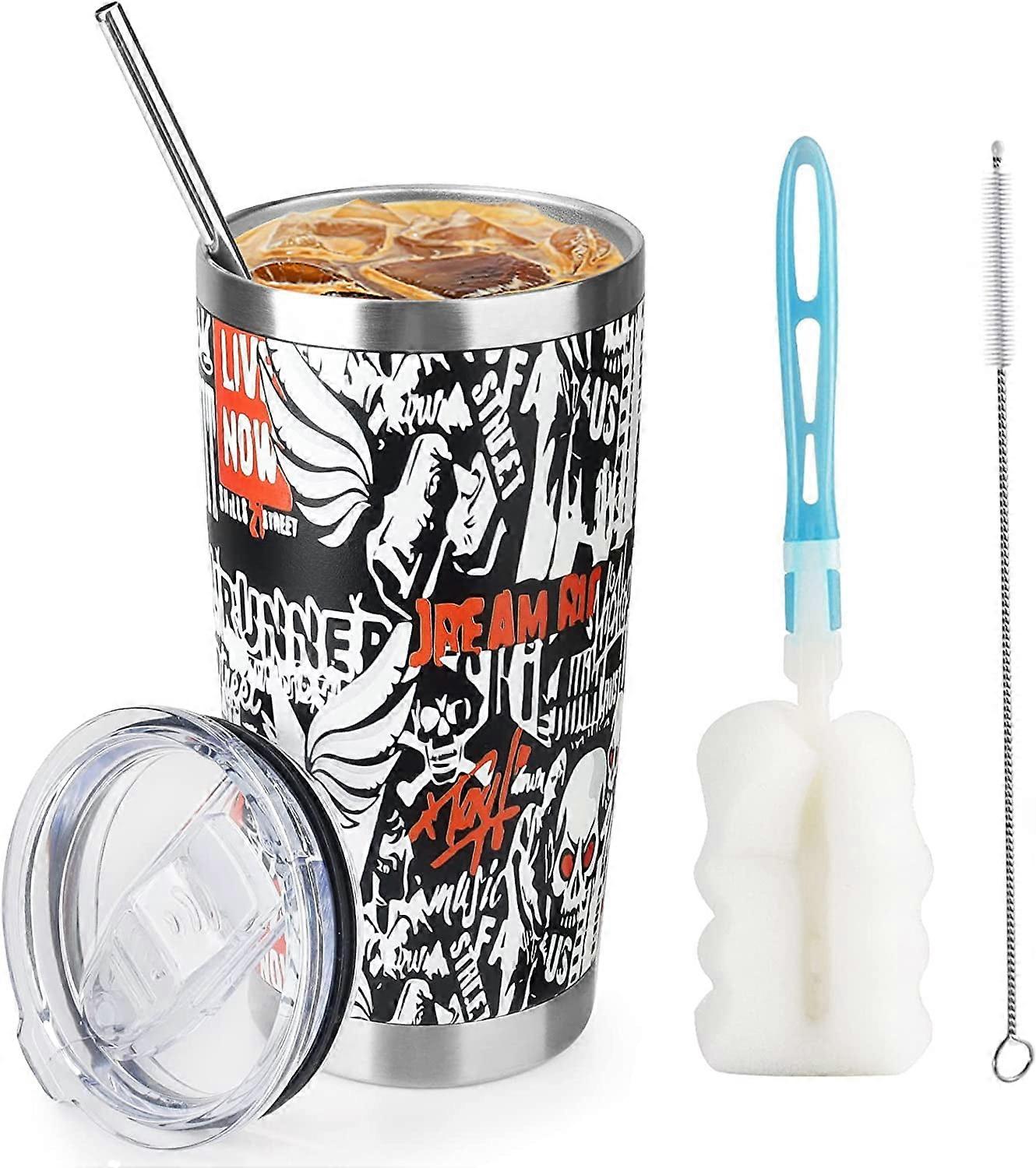 CS COSDDI 20oz Stainless Steel Vacuum Insulated Tumbler - Spill Proof with Lid, Ice Coffee, Iced Tea, Beer (3D Black)