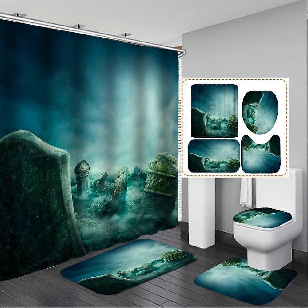 Halloween Shower Curtain Set 71" X 71" with Rugs, Toilet Lid Cover, Bath Mat & 12 Hooks - Compatible with Generic Halloween Bathroom Decor