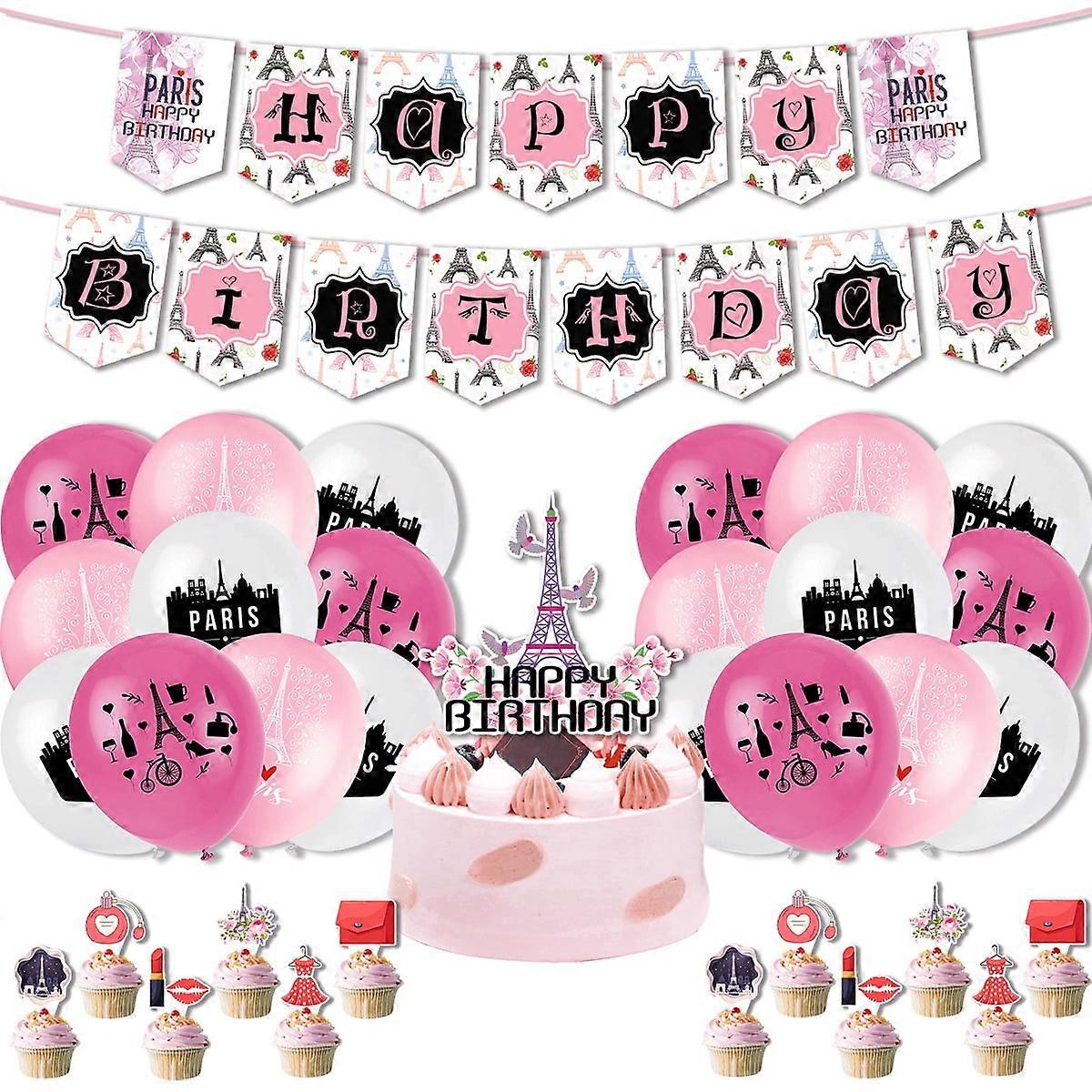 Product Name:Birthday Party Decoration Set Product size: as shown Package size: 22cm*16cm*3cm Packing: OPP bag Material: paper Color: as picture Product list: 1 pull flag + 1 cake inserted flag + 12 paper cups inserted flag + 15 mixed-color balloons + 2 rolls of balloon rope 1. The set includes 1 pull flag + 1 cake insert flag + 12 paper cup insert flags + 15 mixed color balloons + 2 rolls of balloon string 2.Our flags and pennants come assembled, just unpack and hang them and arrange them, easy and convenient to operate, no hassle! 3.This pink Paris themed party set is perfect for children's birthday party decorations, girl's birthday parties and more! 4.Funny cartoon pattern attracts people's attention very much and make your party unique 5.These decoration gadgets are convenient for you to quickly dress up your party, save time and money, and also become an unforgettable moment for your kids, yourself and your family.