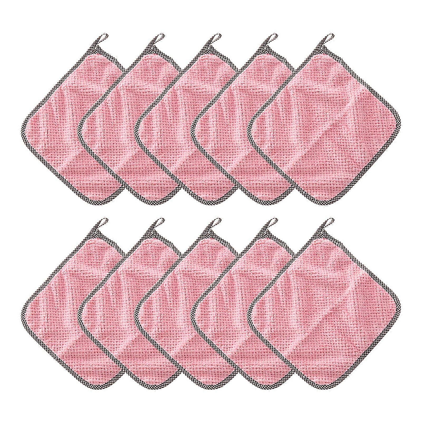 Poaug Towels Clearance - 10Pcs Coral Velvet Kitchen Rags, Absorbent & Thickened, Hangable Cleaning Pads, Pink