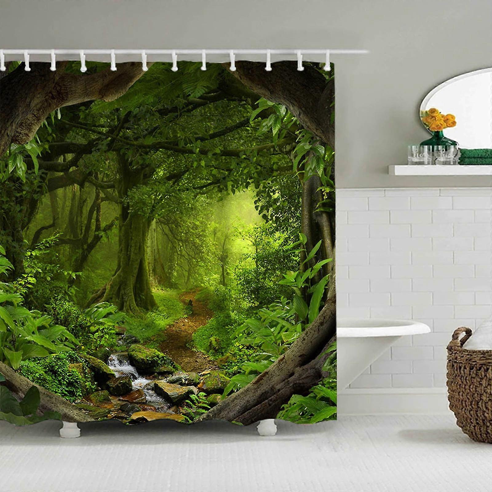 Meitianfacai Forest Shower Curtain, Shady Pathway Design with Bushes & Trunks, Cloth Fabric Bathroom Decor – Compatible with Nature Lovers